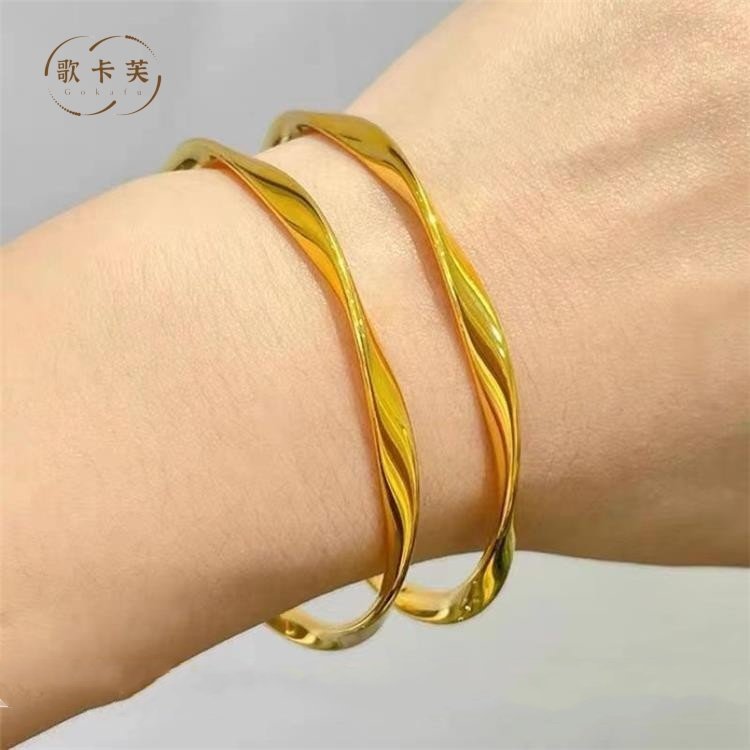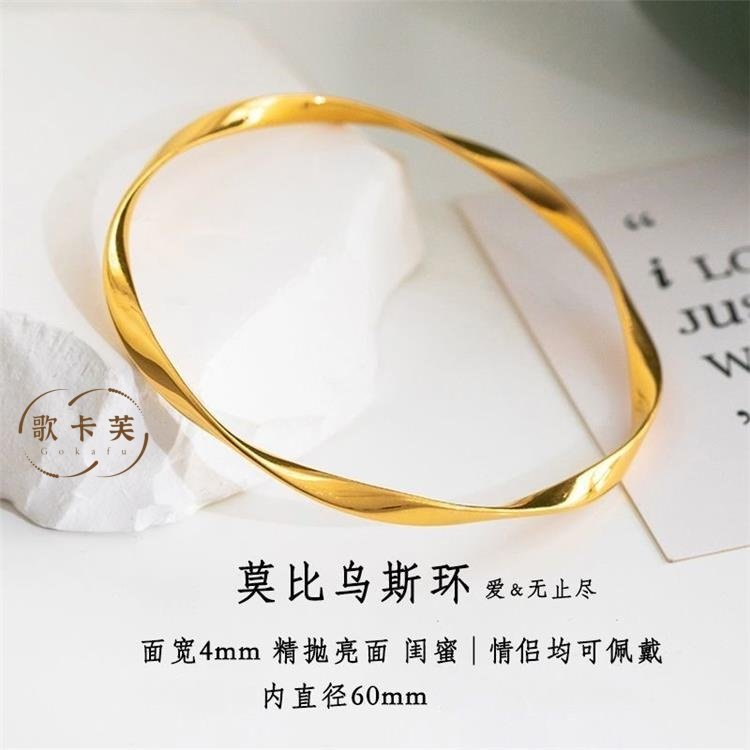 越南沙金新款莫比乌斯环18k黄金不掉色手镯实心时尚简约仿真金999