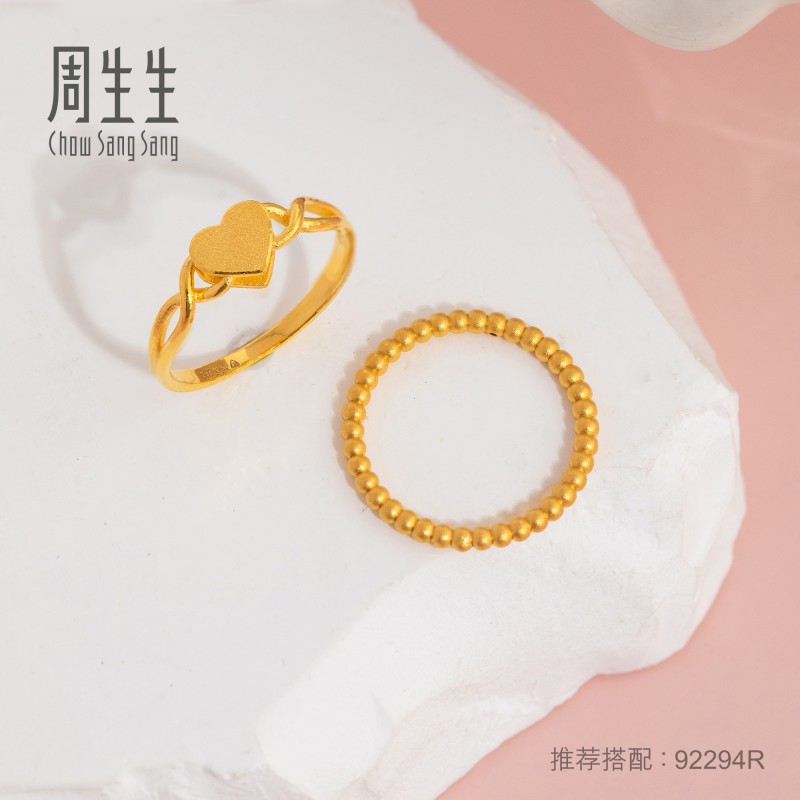 周生生Essence永系列黄金足金心形结婚求婚戒指女戒素金15277R