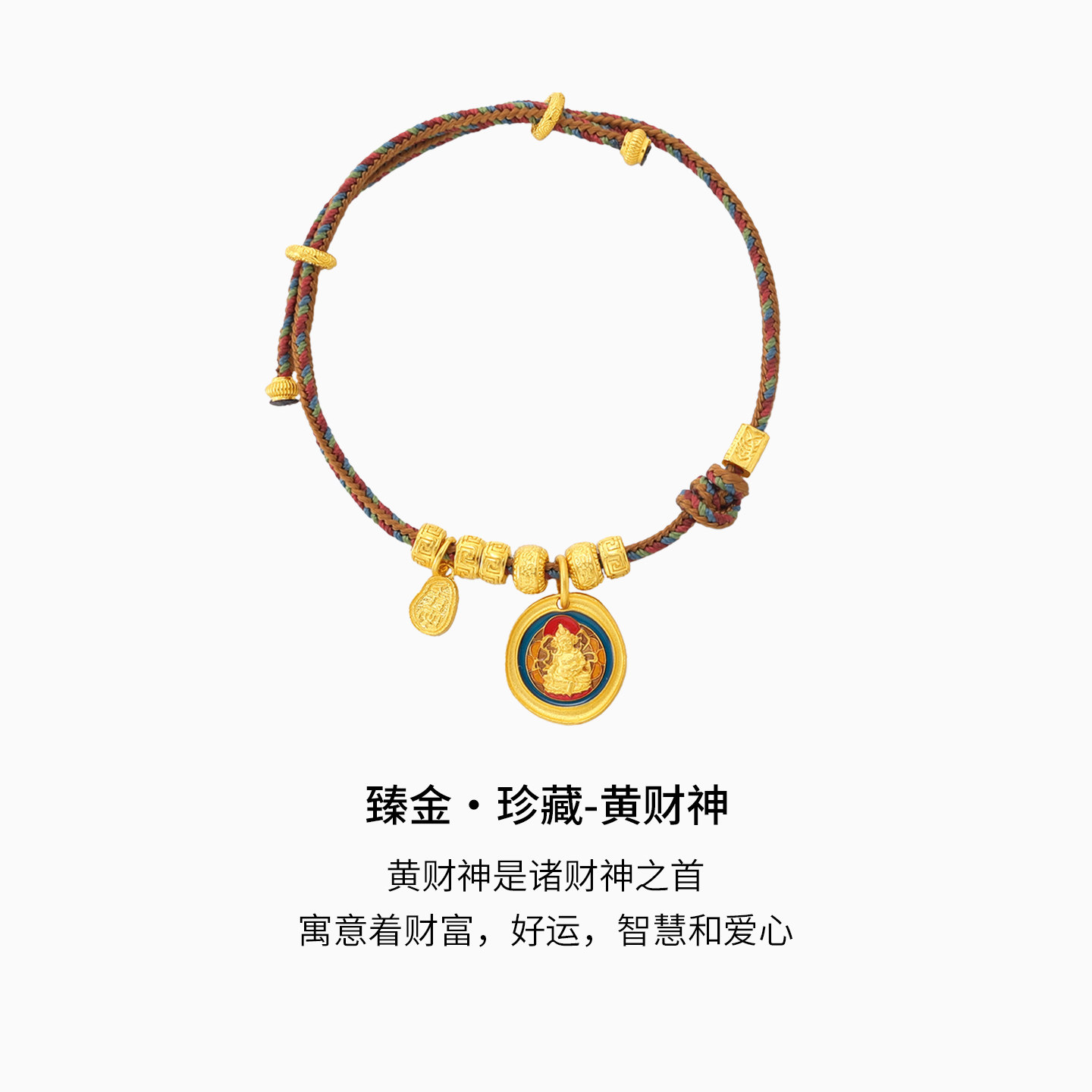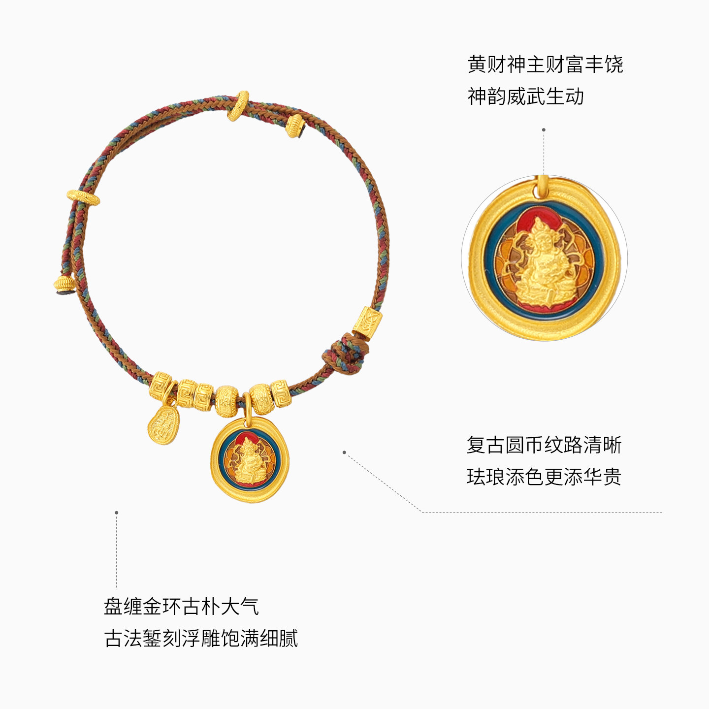 潮宏基臻金珍藏黄财神黄金手链足金手绳手饰古法金珐琅新中式 卟