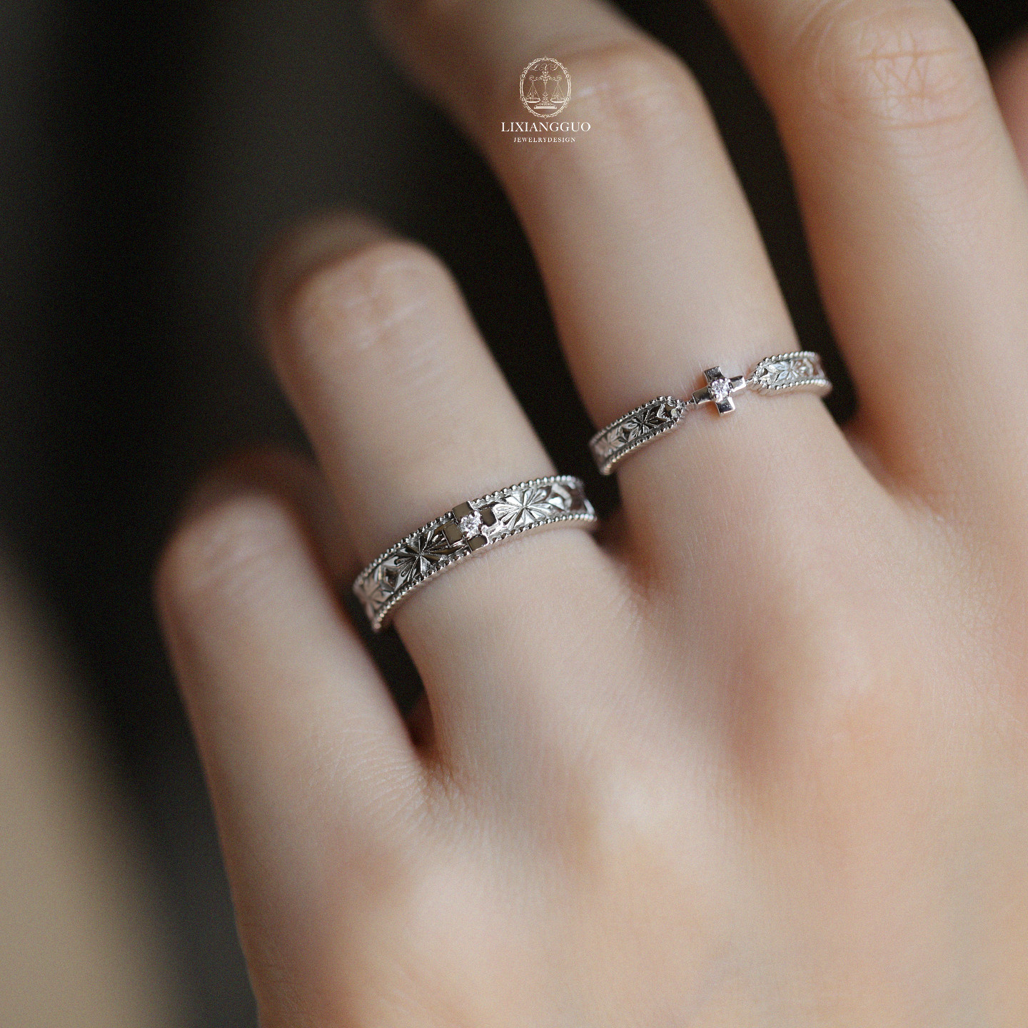 「冠冕」十字为誓 星光为证925纯银莫桑石星轨戒指宿命感情侣对戒