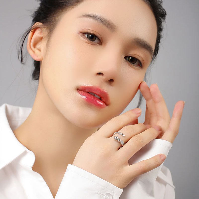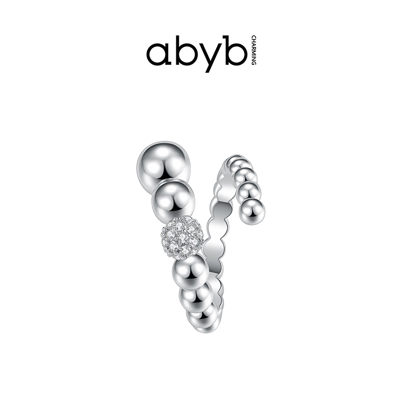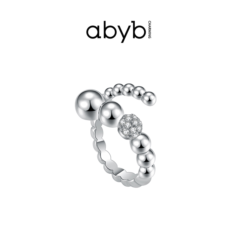 abyb旋转雪球开口戒指食指戒男女情侣对戒简约指环配饰生日礼物