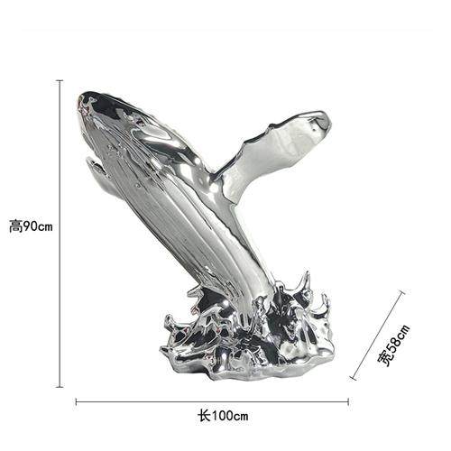 设计师款式鲸鱼落地雕塑摆件抽象海豚玻璃钢售楼处大堂酒店艺术品