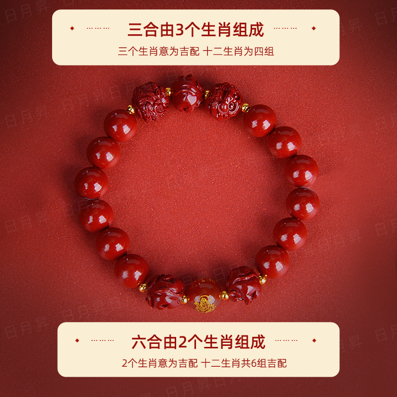 正品朱砂手串女男款手链三合六合十二生肖本命佛兔年情侣招财新品