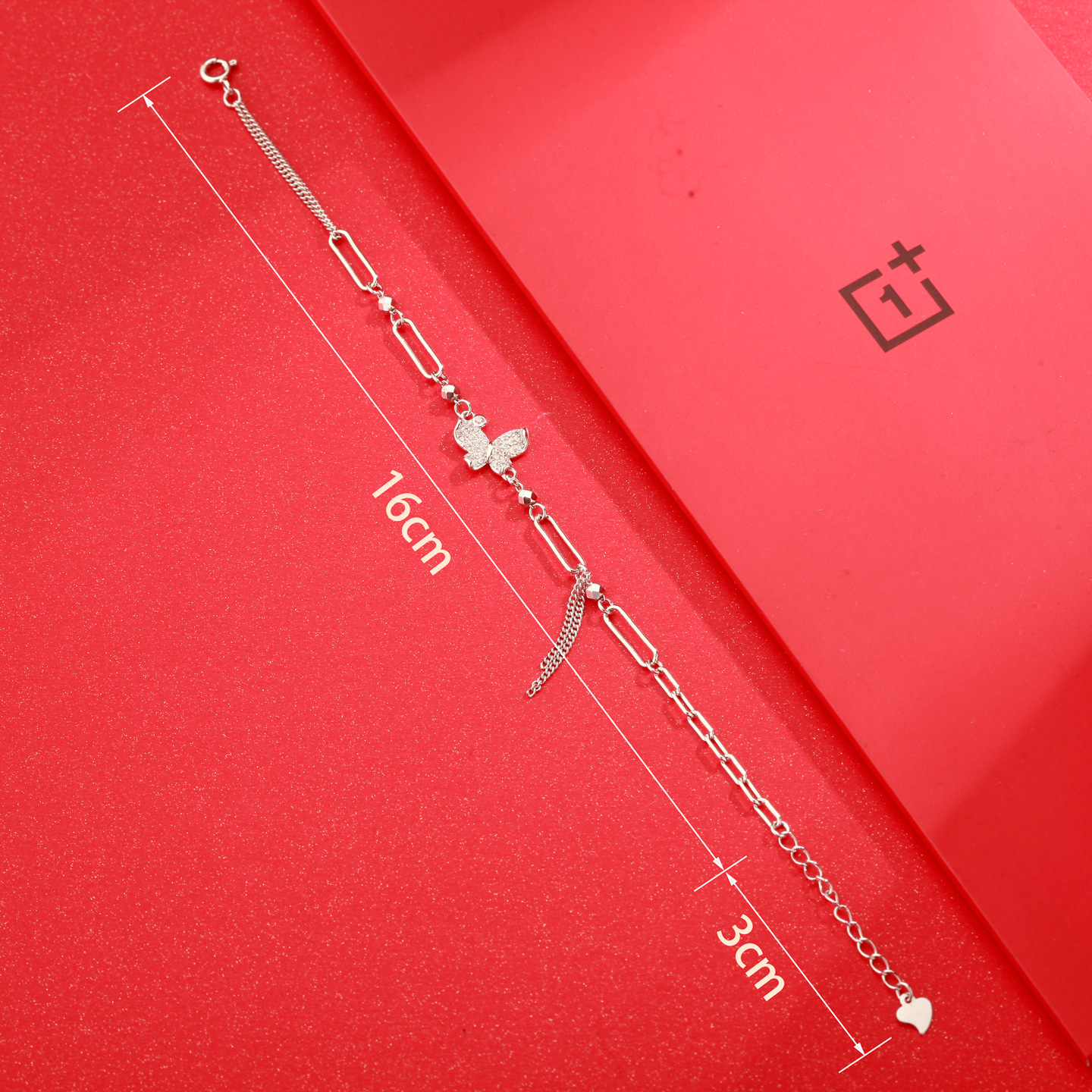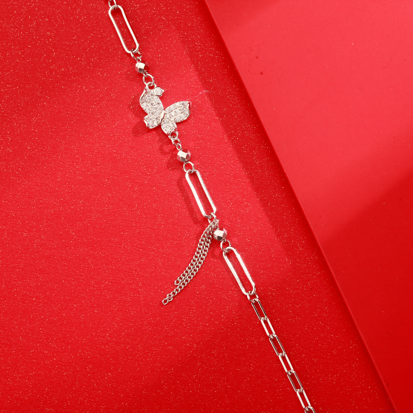 梦祥银个性化DIY925银手链女款蝴蝶坠镶嵌锆石带链尾可调节送女友
