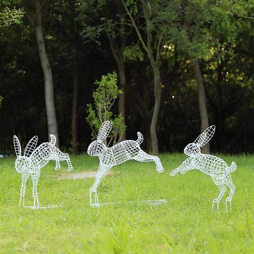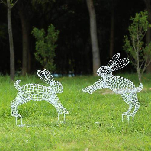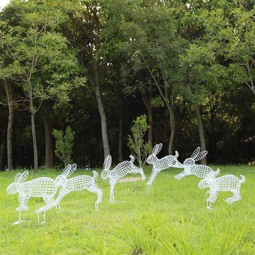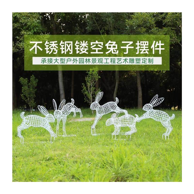 户外不锈钢镂空兔子雕塑园林售楼部草坪铁艺发光动物景观装饰摆件