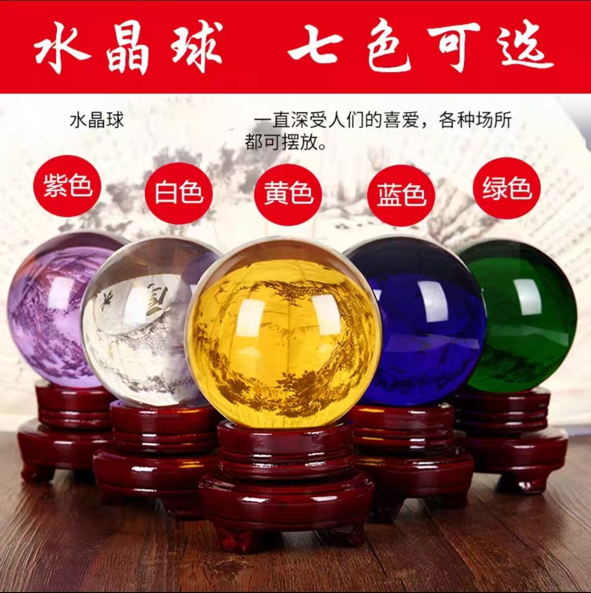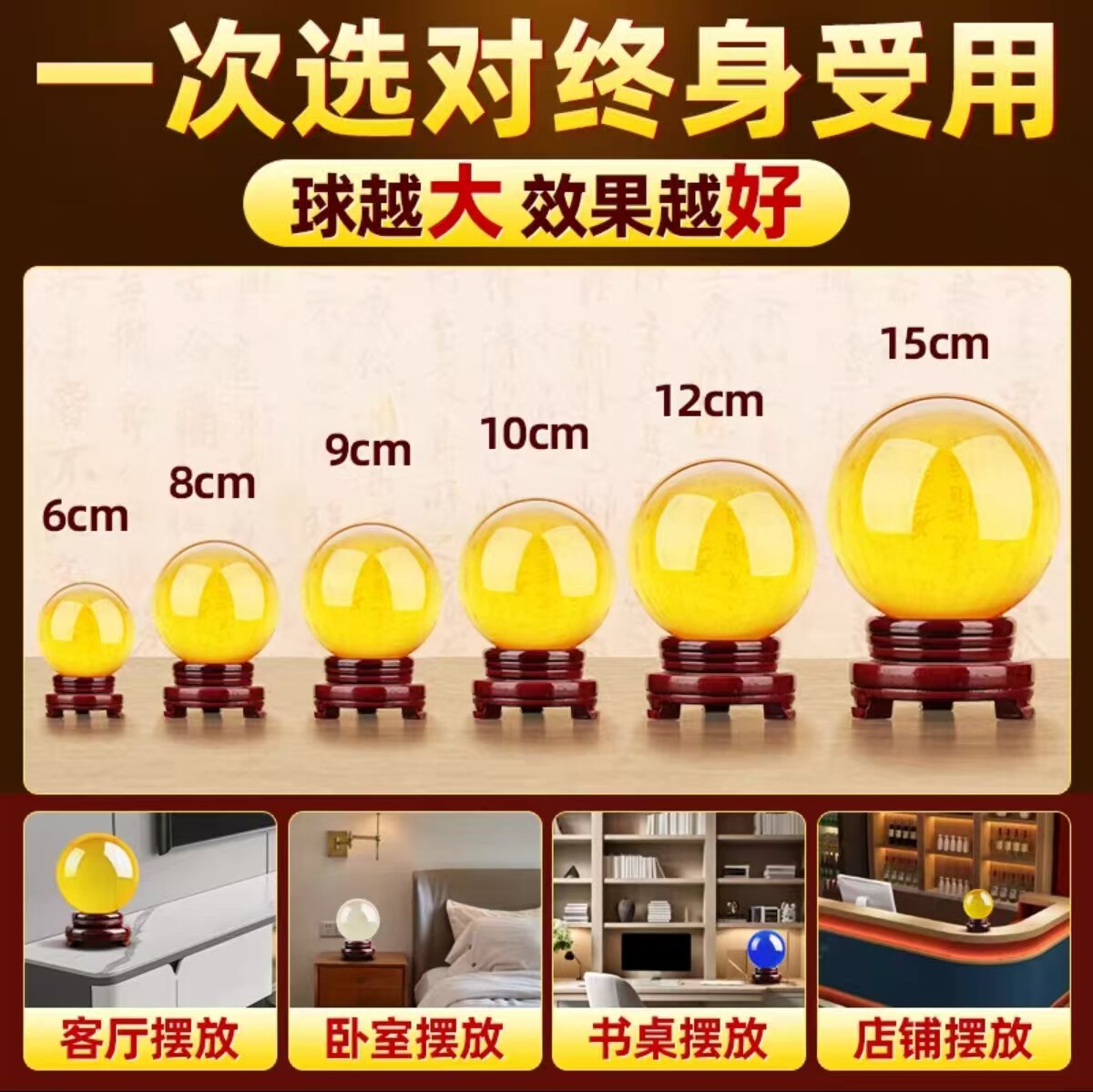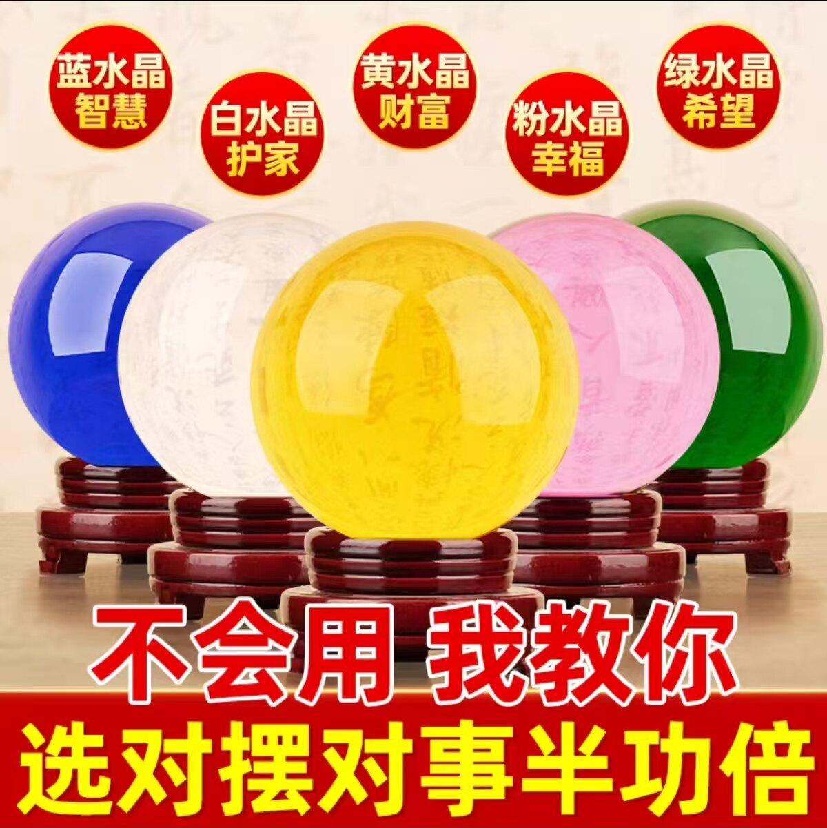 黄色水晶球摆件招财白紫红粉透明圆球家居装饰品客厅小号开业摆件