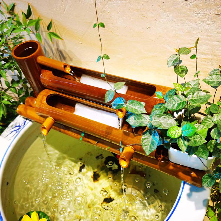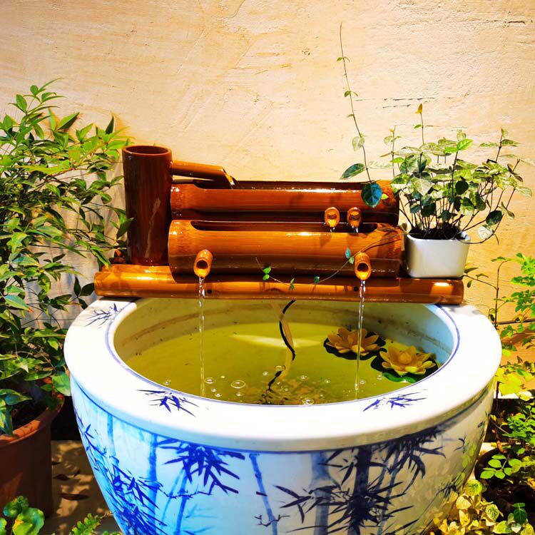 陶瓷鱼缸流水竹子循环水摆件竹筒流水器石槽圆缸过滤器办公室招财