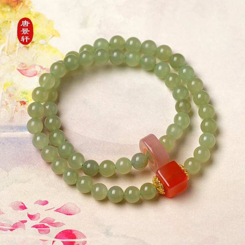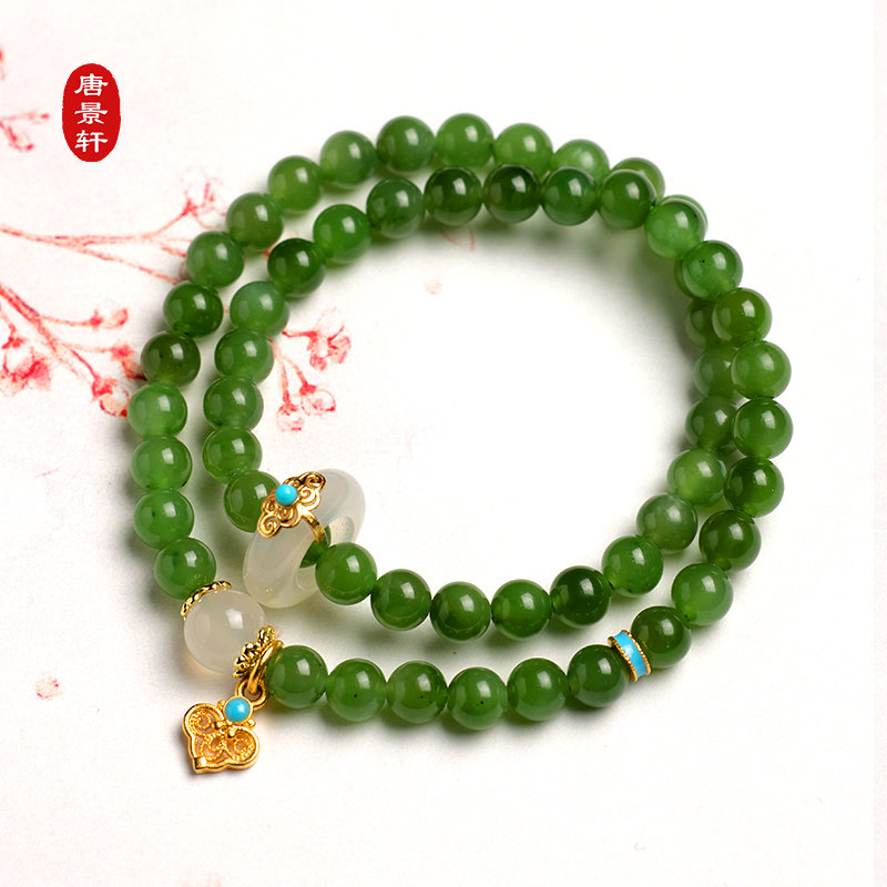 天然和田碧玉晴水玉菠菜绿6毫米单圈双全女士手链手串闺蜜礼物