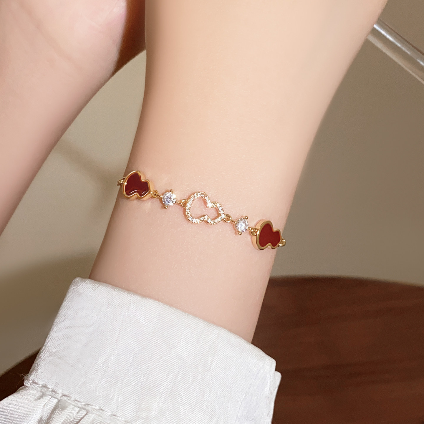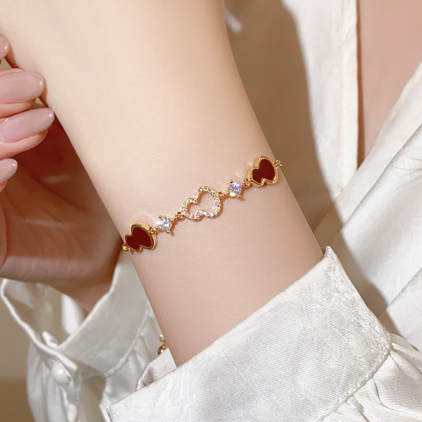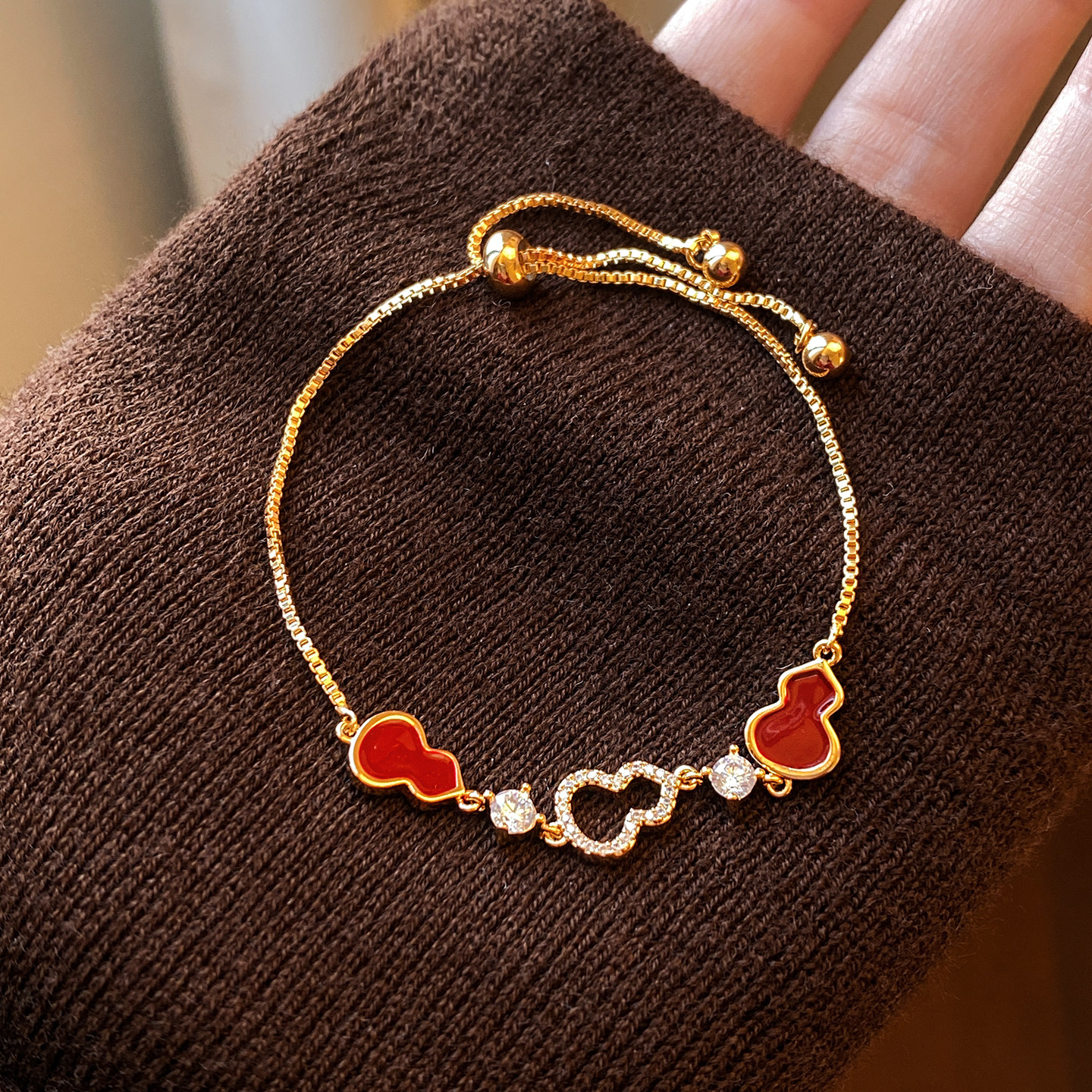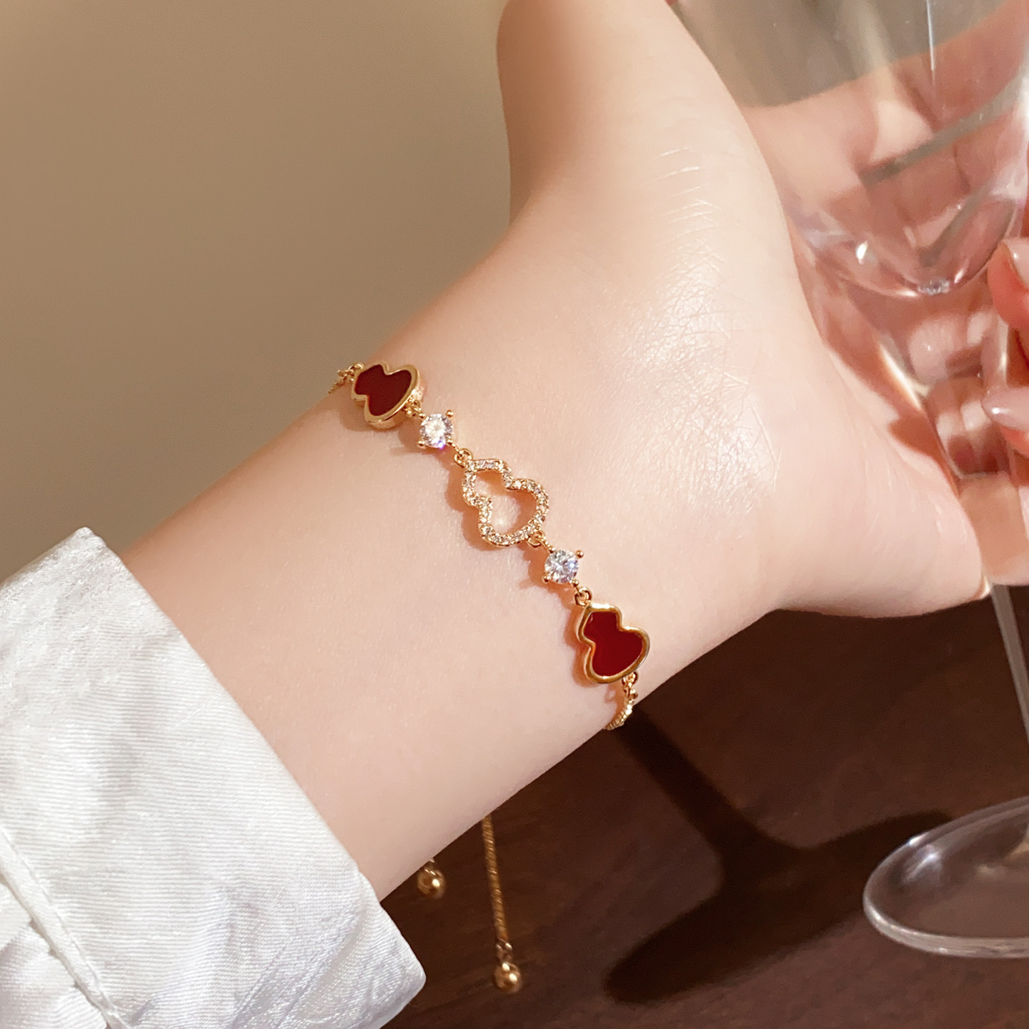 红色葫芦手链女款轻奢小众精致高级感2026新款叠戴珍珠四叶草手饰