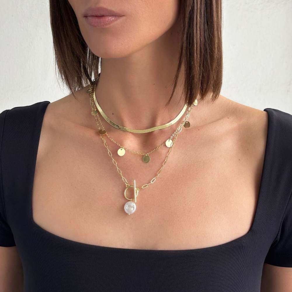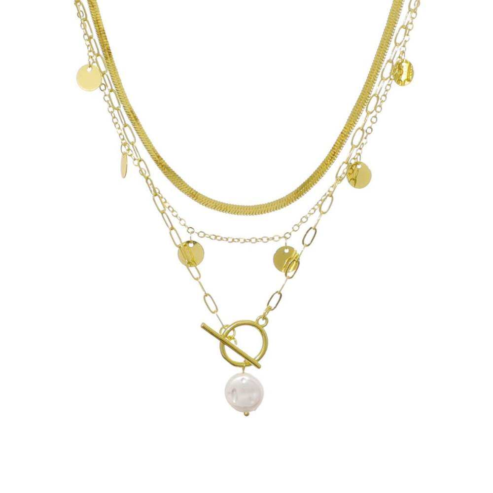 自营adornia14k Gold Plated Pearl and 3-Layer Necklace - whit