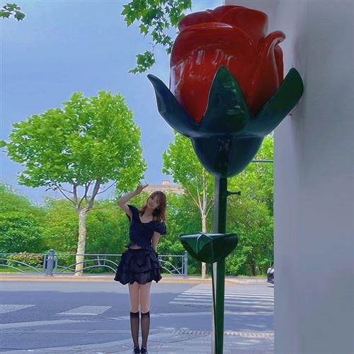 大型仿真玫瑰花玻璃钢雕塑橱窗摆件公园商场装饰婚礼店铺花艺装饰