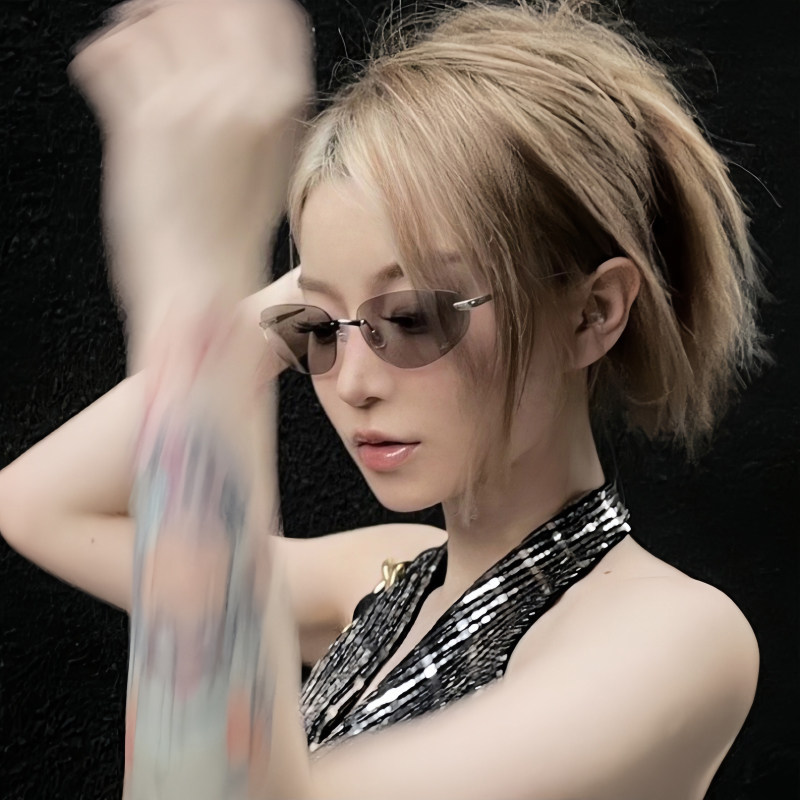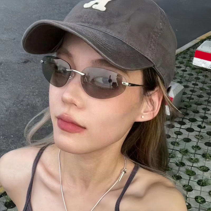 复古新浪潮高级质感Y2K太阳眼镜女金属无边框90年代时髦猫眼墨镜