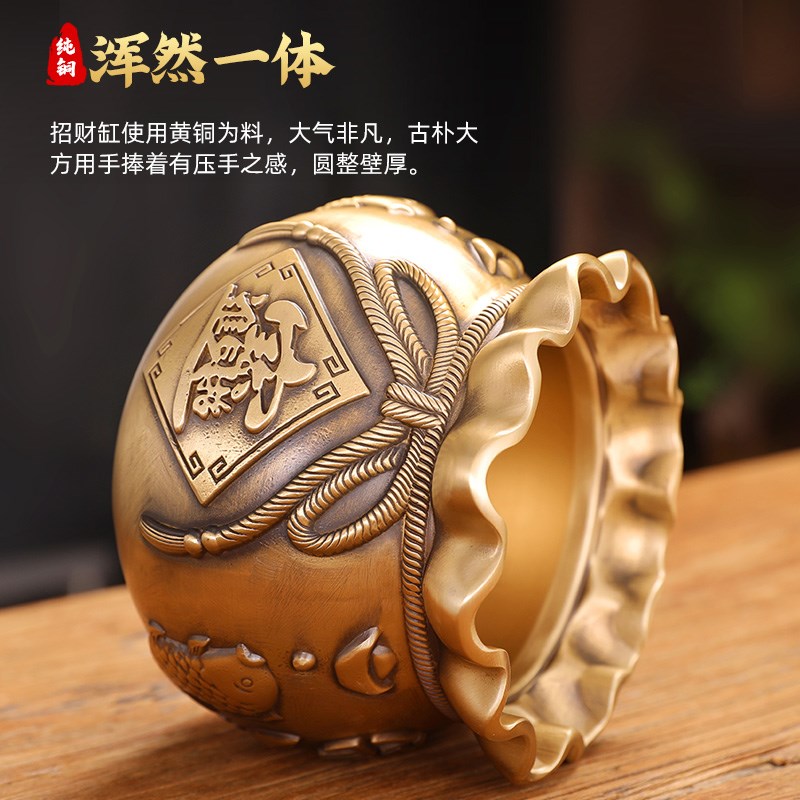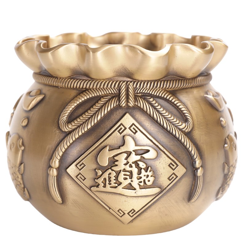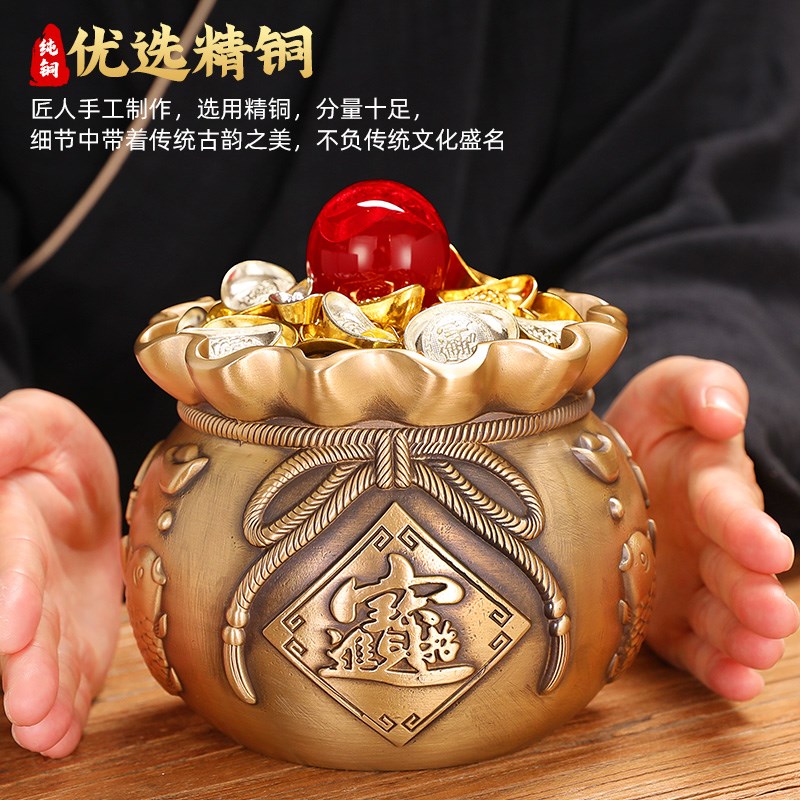 黄铜钱袋聚宝盆摆件存钱罐福袋中式玄关办公室Q装饰品桌Z面摆放送