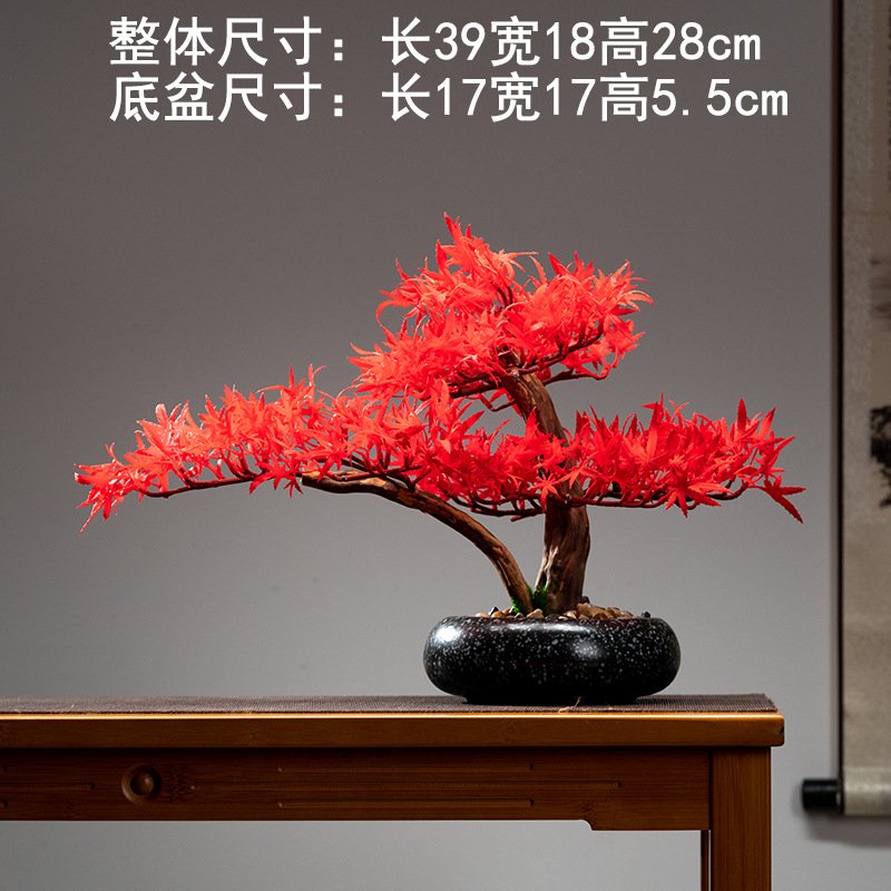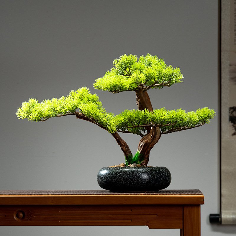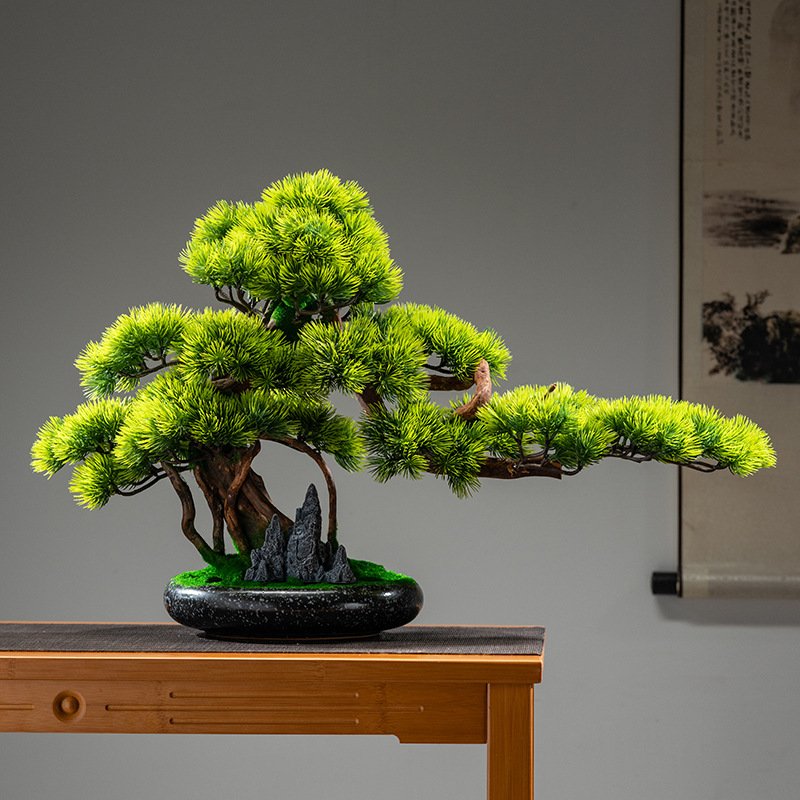 崖柏松新中式仿真迎客松盆景实木罗汉松客厅茶桌玄关桌面装饰摆件