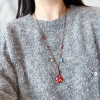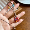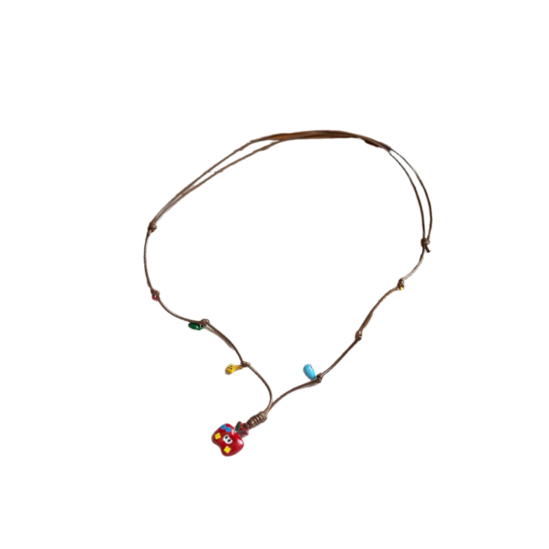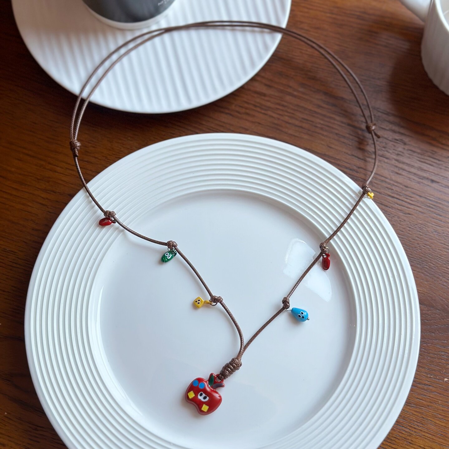 复古小众设计编织串珠项链红色苹果吊坠彩色豆子锁骨链百搭毛衣链