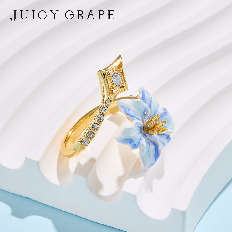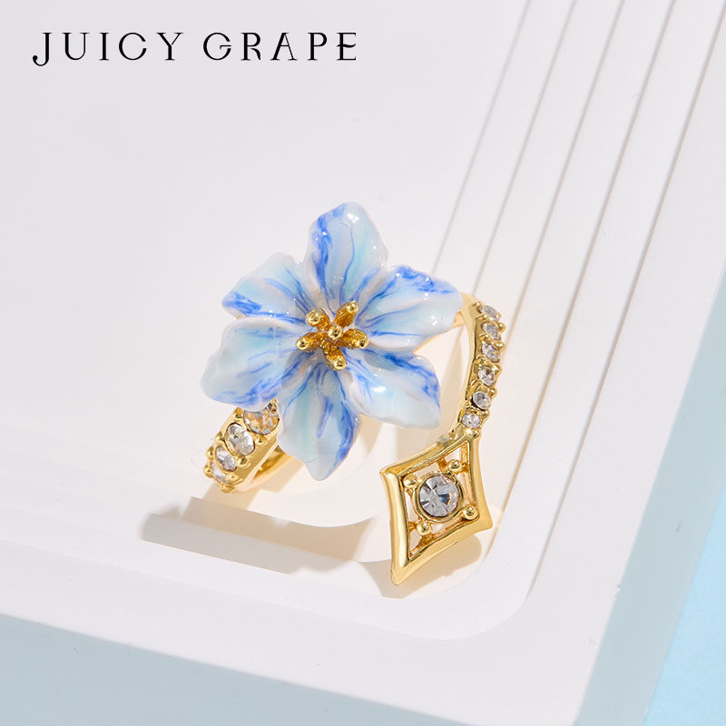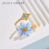 蓝色花朵开口戒指女小众设计轻奢高级感可调节指环食指戒女友礼物