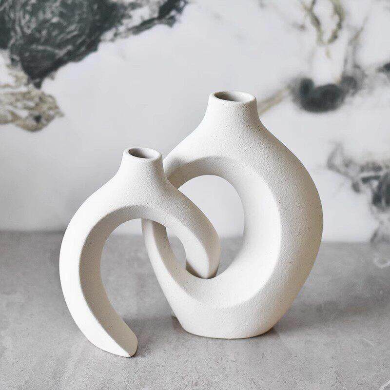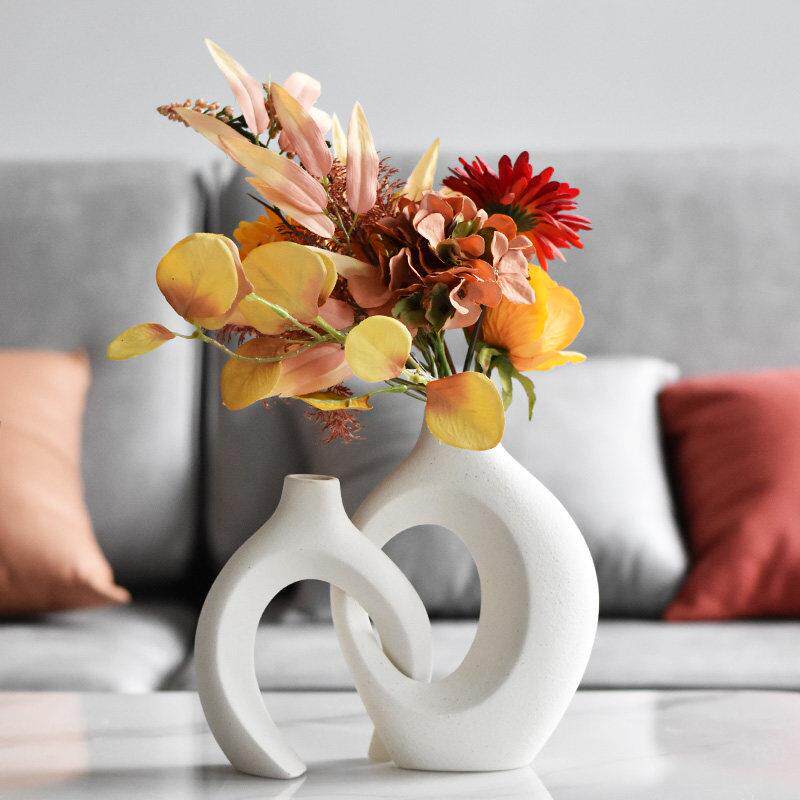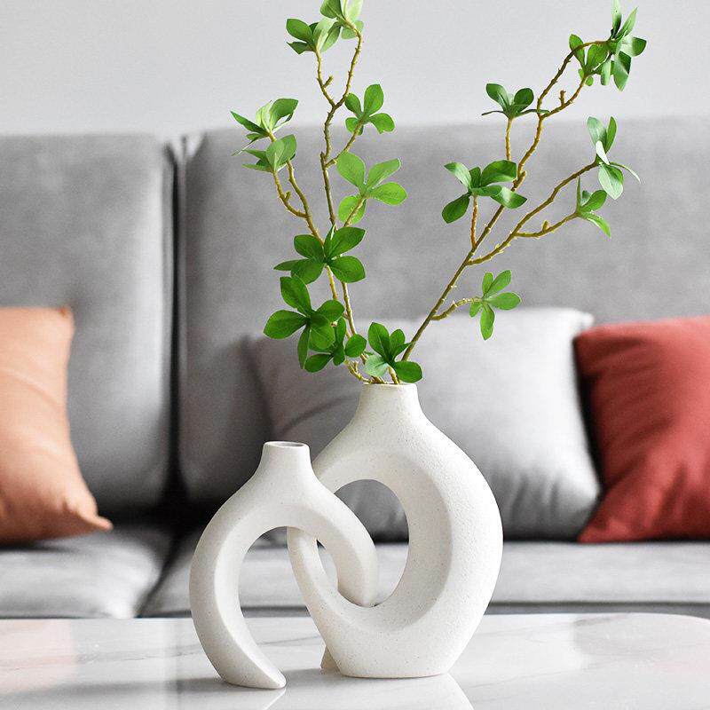 斯堪的纳维亚奶油风格的绿色植物艺术装饰品入口客厅陶瓷白色壁龛