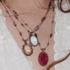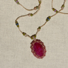 Ruby. 七月生辰石.红宝石与祖母绿红蓝宝编绳项链藤蔓