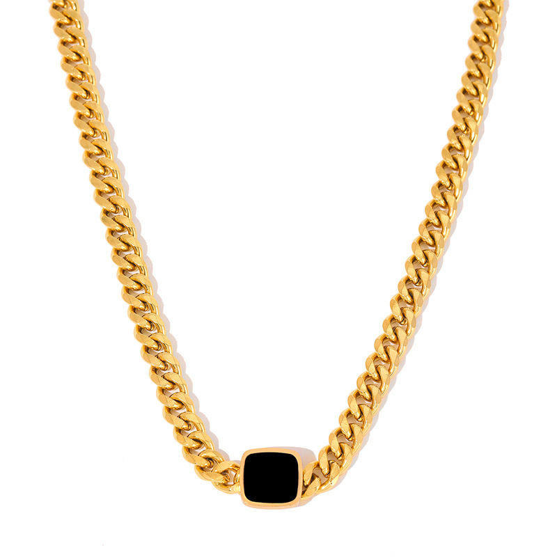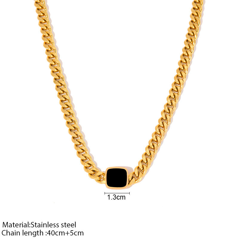 欧美跨境首饰个性夸张钛钢粗链项链百搭黑色吊坠方块锁骨链颈链
