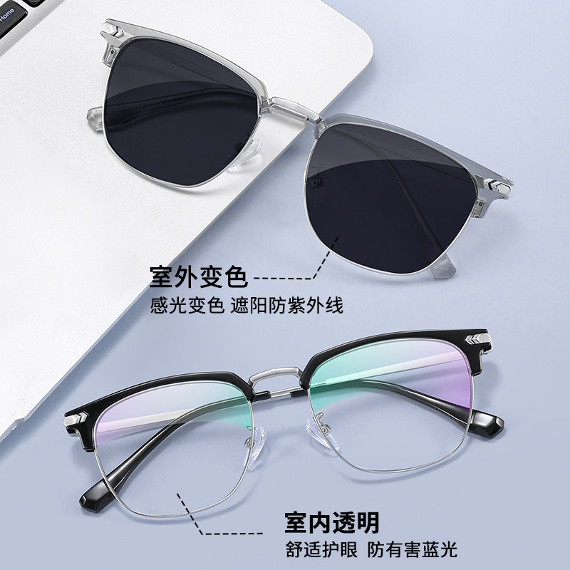 变色眼镜男自动感光眉线半框眼镜架可配近视墨镜遮阳防晒太阳眼镜