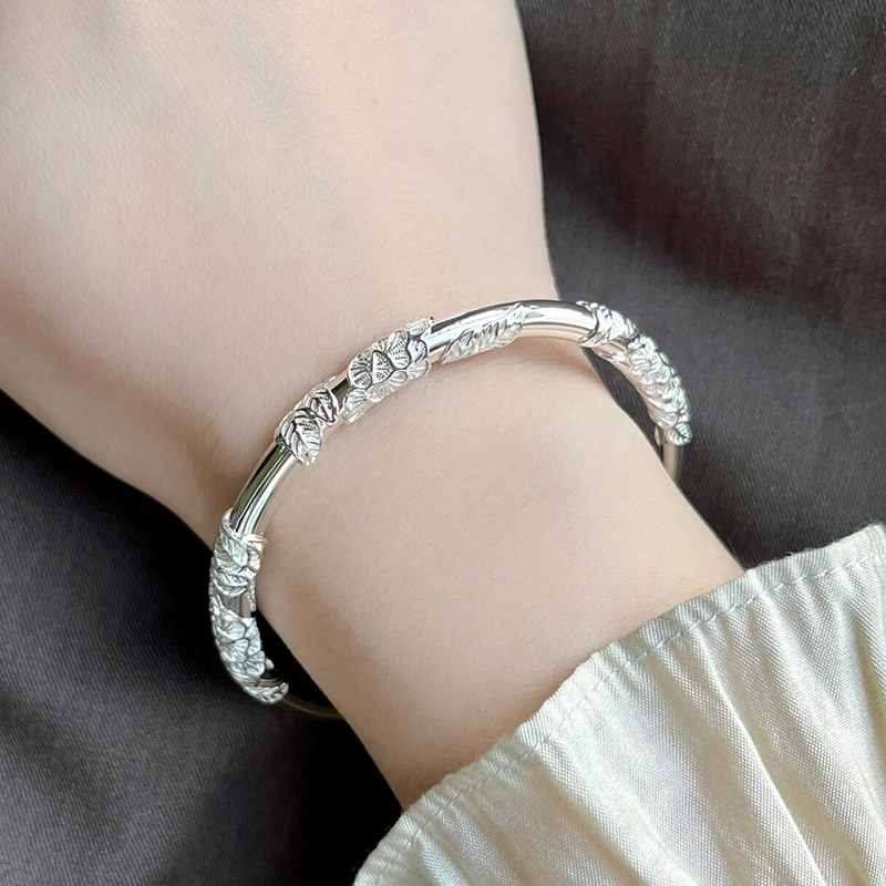 银手镯女纯银9999繁花似锦银镯子2025新款女款银首饰生日礼物女生