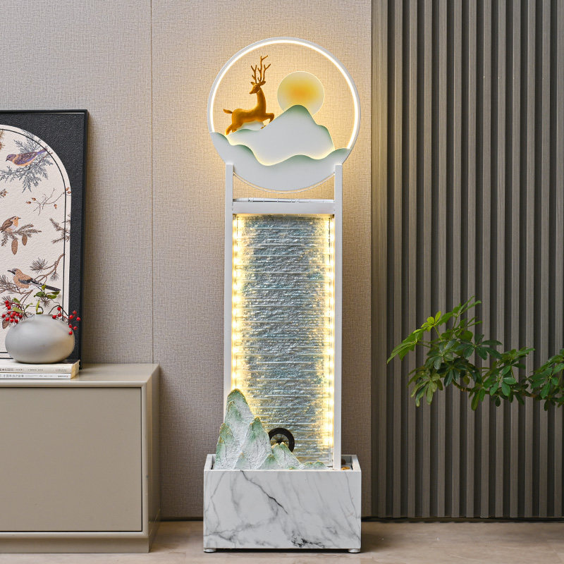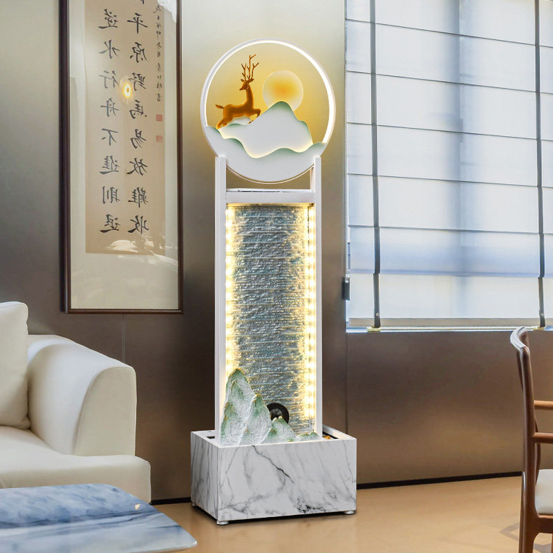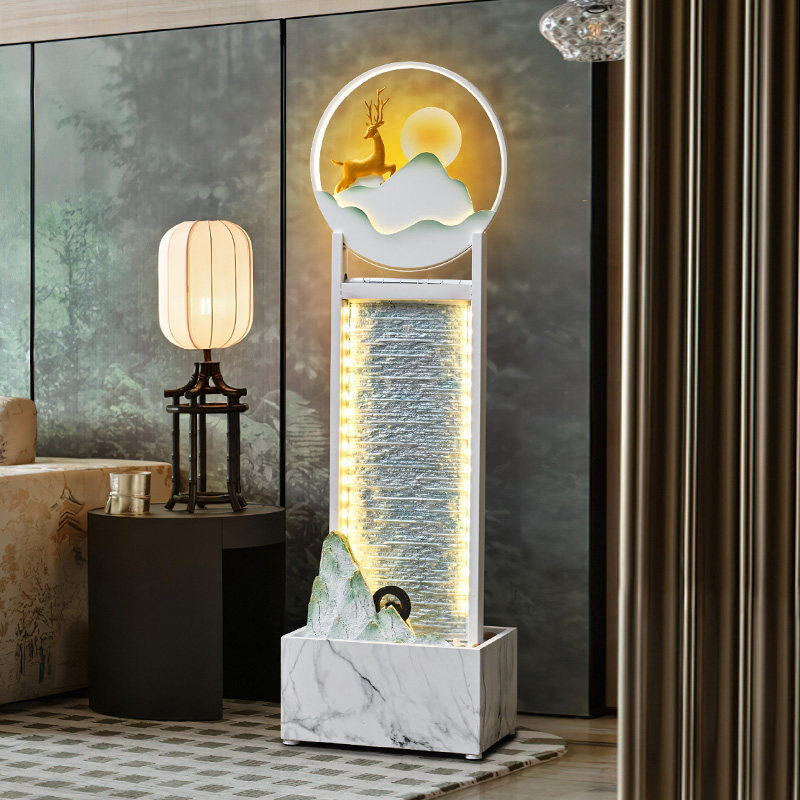 现代水幕墙流水摆件招财假山循环水客厅电视柜入户风水轮开业乔迁