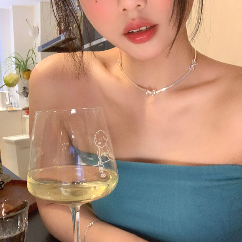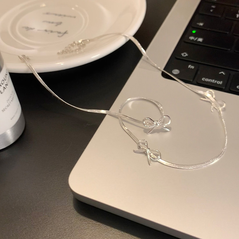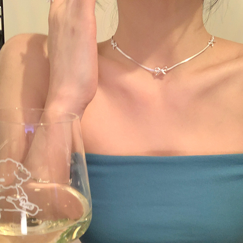 冷感美女 甜酷银色蝴蝶结choker项链女小众设计感高级蛇骨链项圈