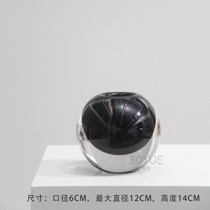 现代简约轻奢黑色琉璃花瓶民宿样板间创意客厅博古架摆件软装花艺