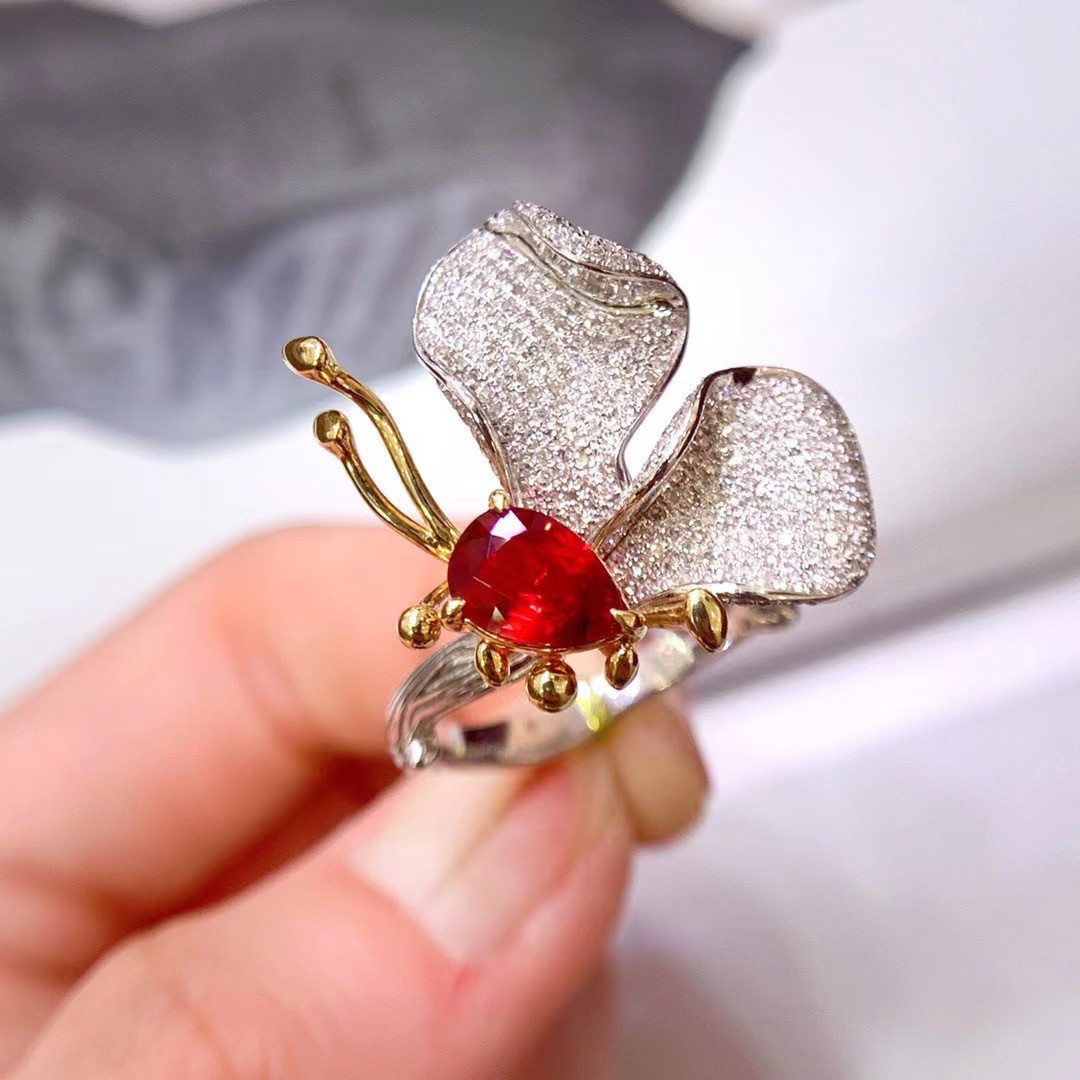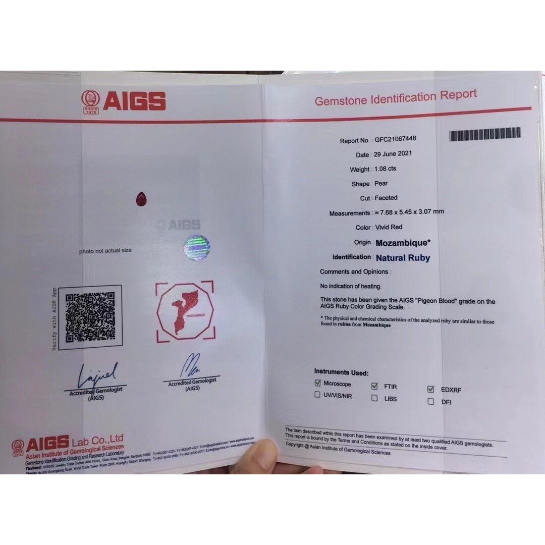 无烧鸽血红红宝石戒指主石1.08ct钻石1.029ct总重9.14克