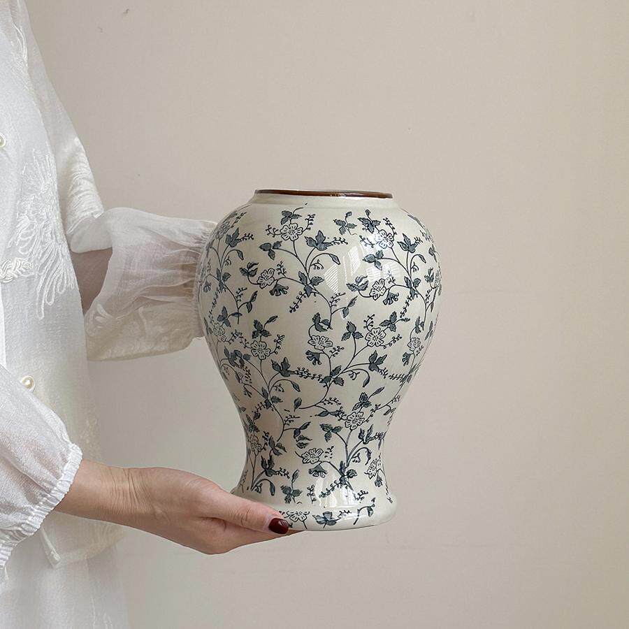 花瓶摆件客厅插花陶瓷青花瓷水养鲜花花器复古陶罐玄关桌面装饰