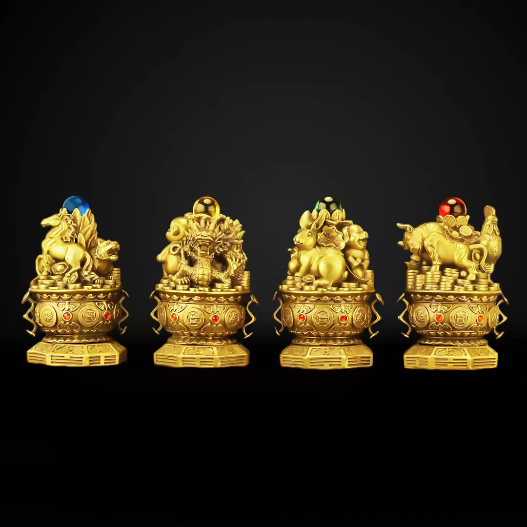 三合生肖摆件铜猴鼠龙虎马狗蛇鸡牛猪兔羊三合贵人局申子辰亥卯未