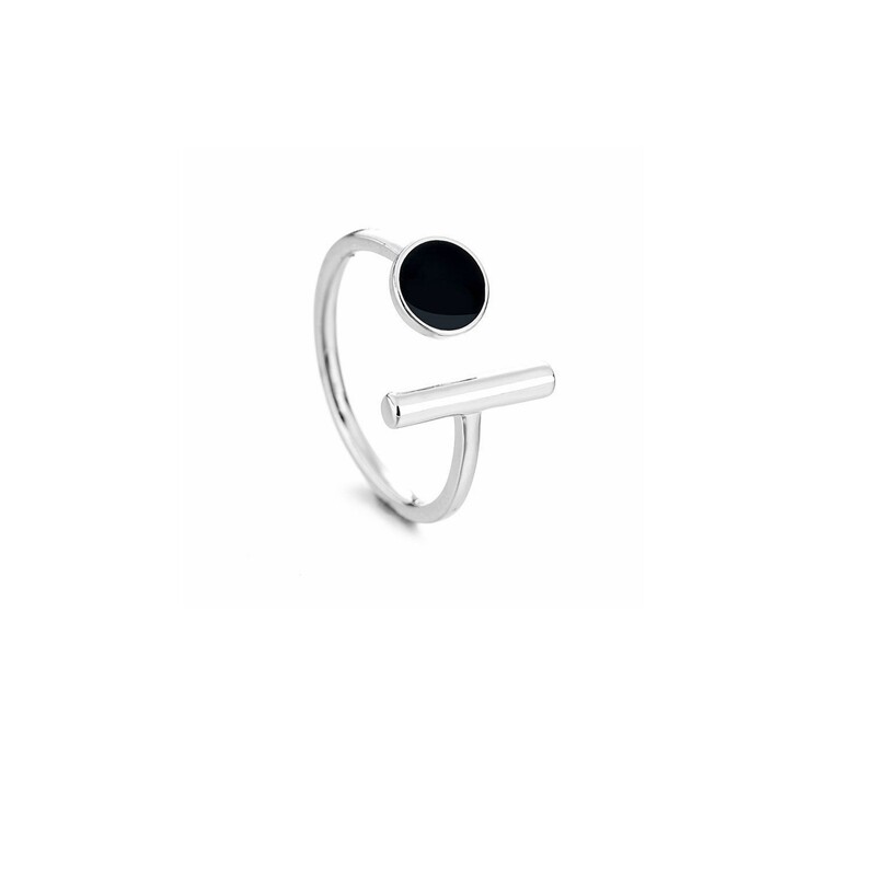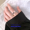 LIHAO黑白地带戒指女INS潮新款简约时尚个性冷淡风黑色圆形一字戒