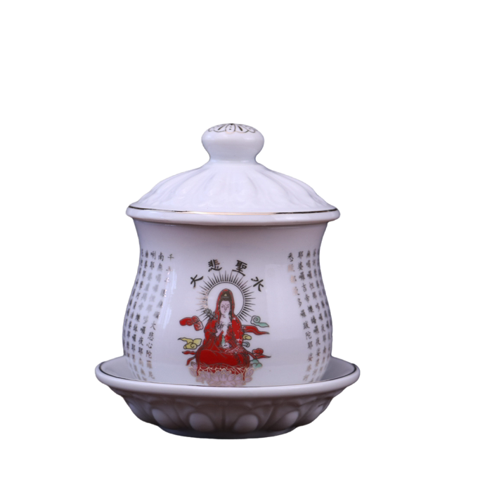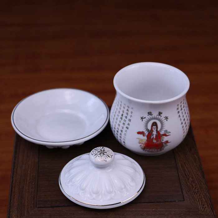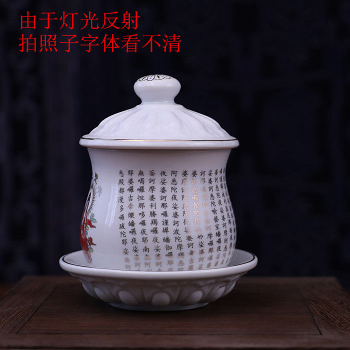 包邮 佛堂供水杯供佛杯 陶瓷大悲水杯观音莲花圣水杯净水杯大悲咒