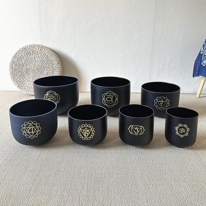 水晶钵瑜伽颂钵黑色水晶钵音钵音乐碗七音调乐器瑜伽钵含包赠棒垫