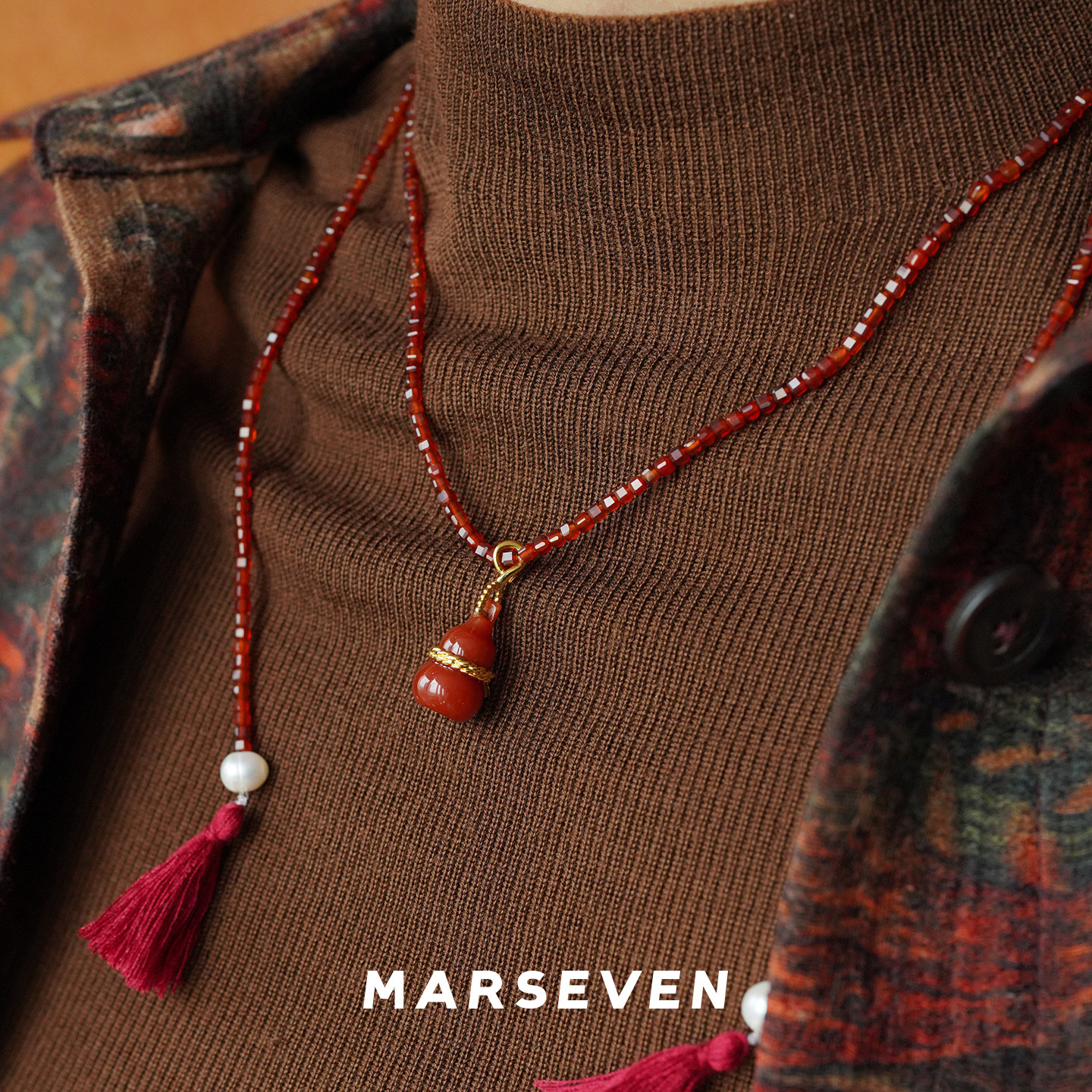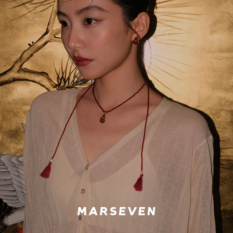 MARSEVEN x 默叙 红色绳结葫芦流苏长项链 原创设计师小众锁骨链