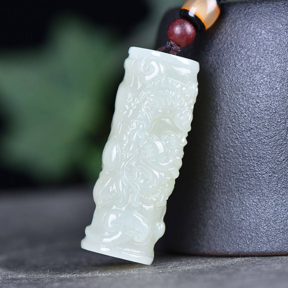 精致和田玉龙柱吊坠白色新中式简约玉石项坠男女通用挂件送礼佳品