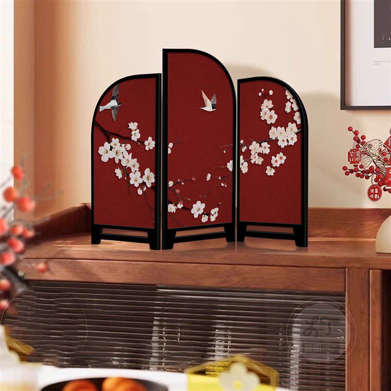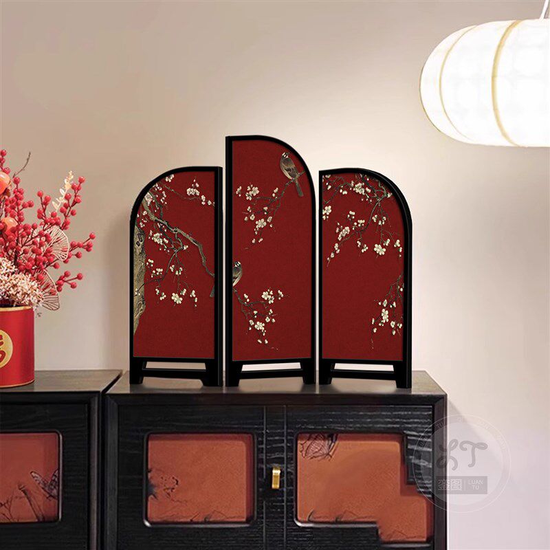 新红色喜上眉梢客厅电视柜摆台茶室酒店小屏风画 画