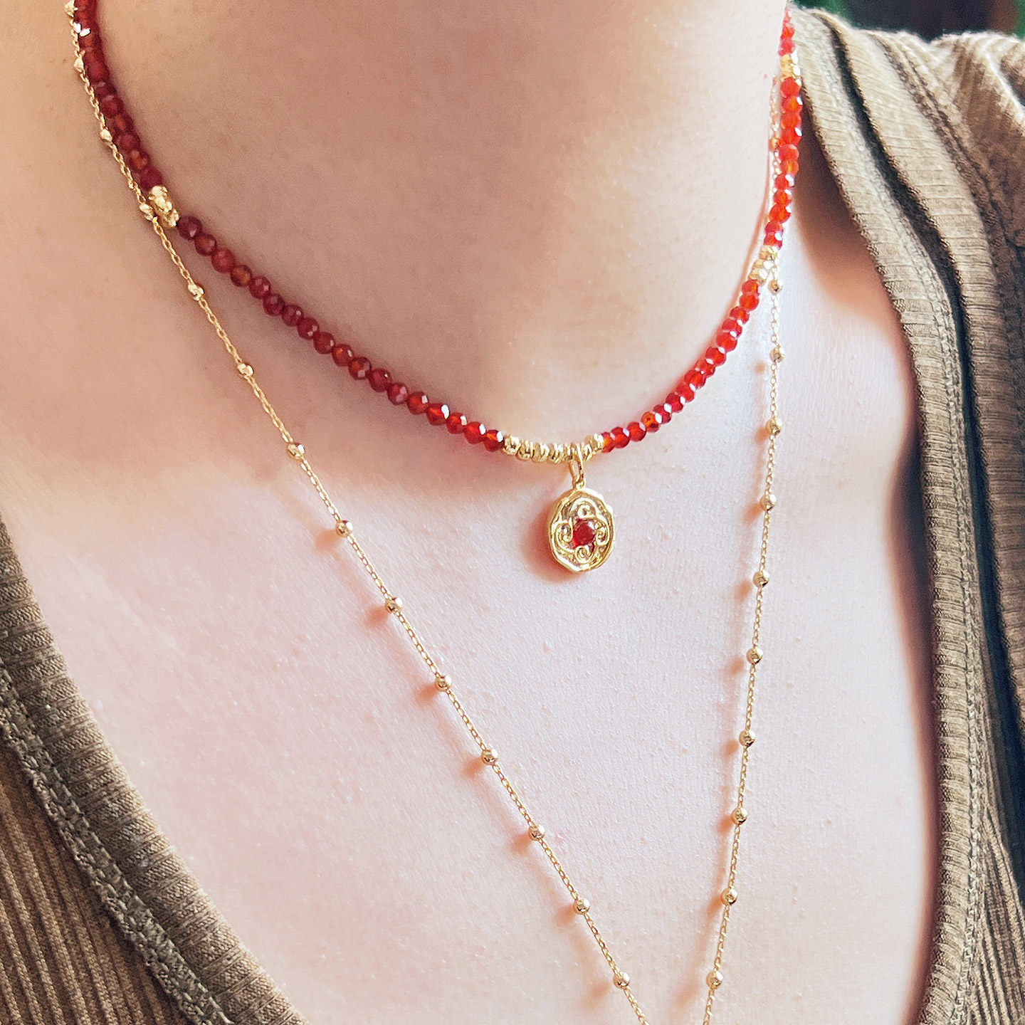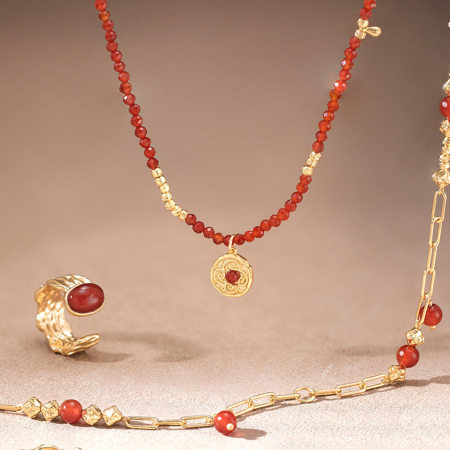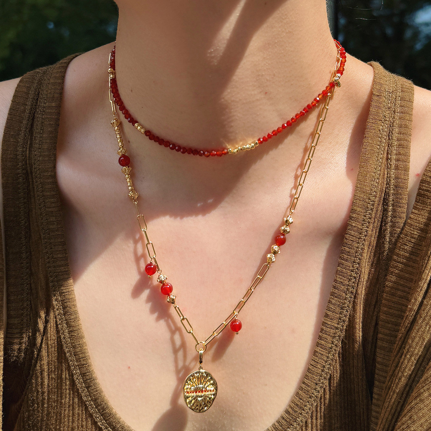 莓拉「小欢喜」复古本命年红色串珠项链氛围感叠戴毛衣链