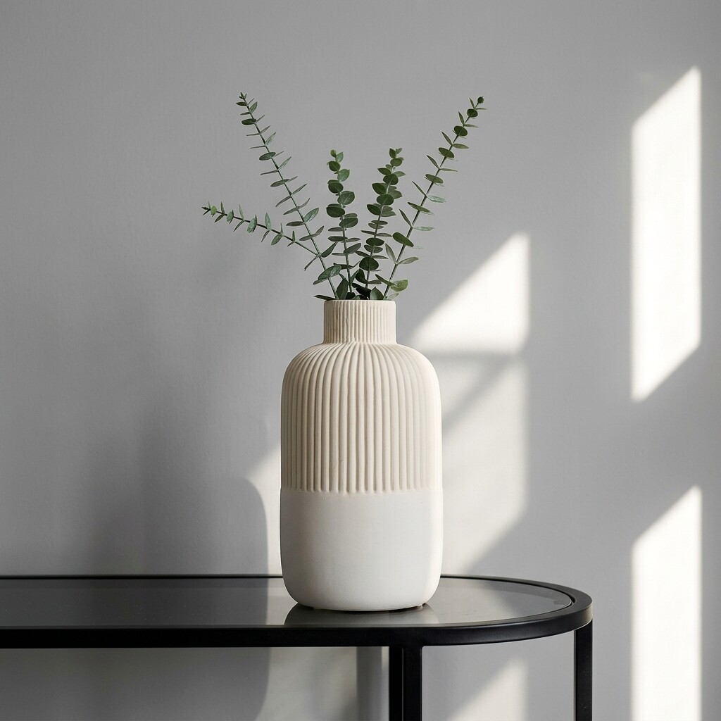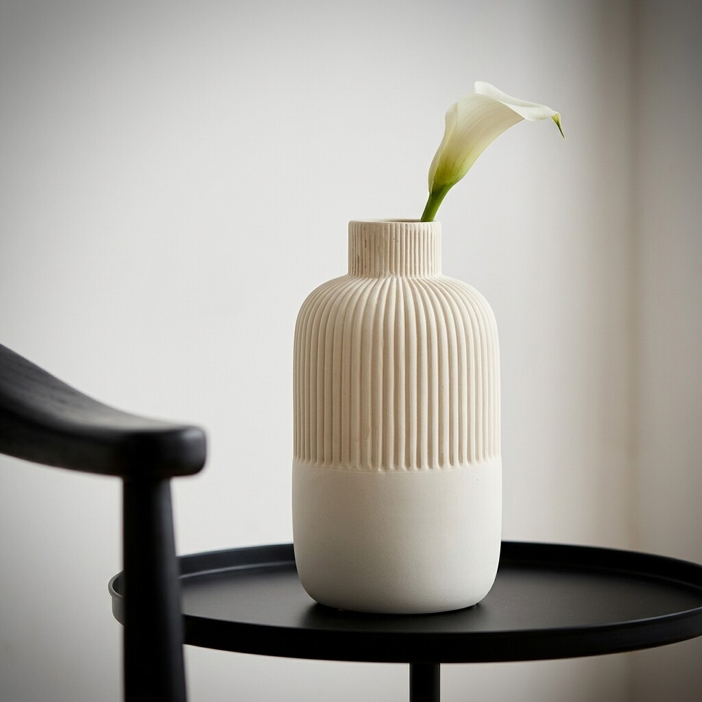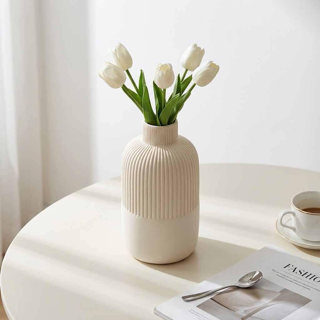 简约白色陶瓷花瓶竖条纹装饰摆件家居桌面样板间极简风
