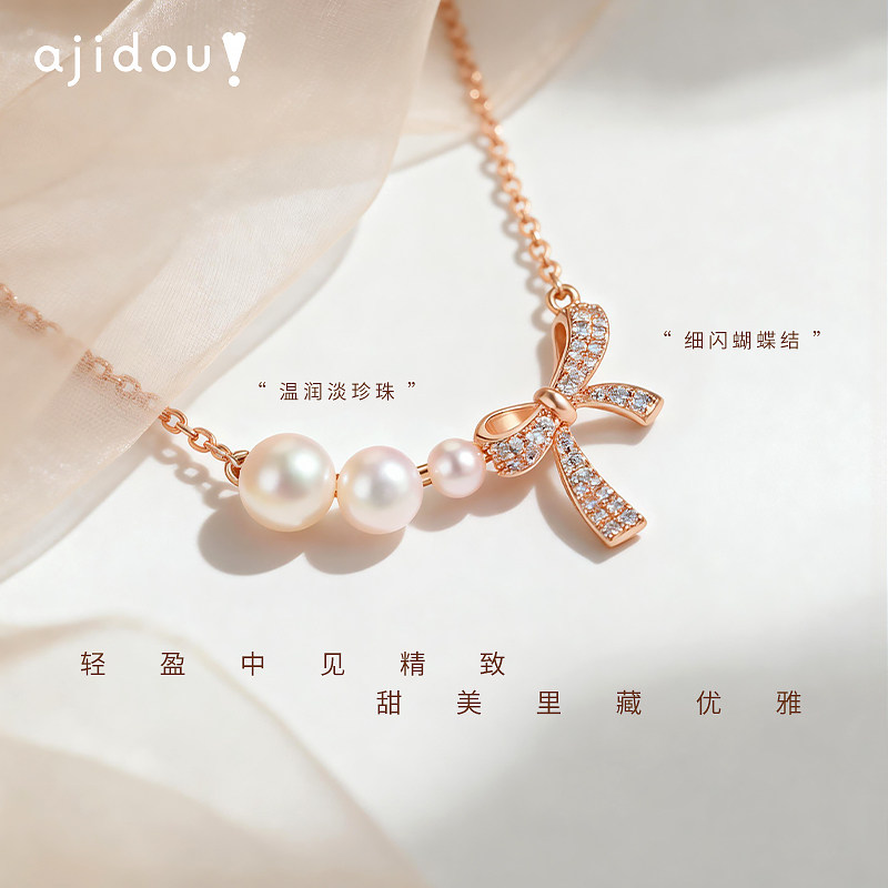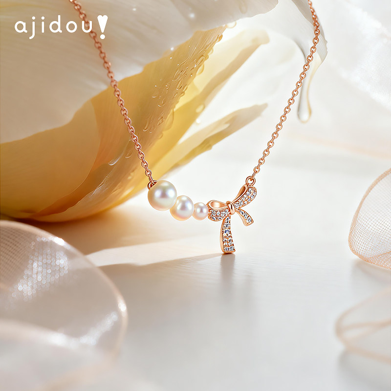 AJIDOU阿吉豆项链女天然珍珠项链蝴蝶结锁骨链小众爆款轻奢毛衣链