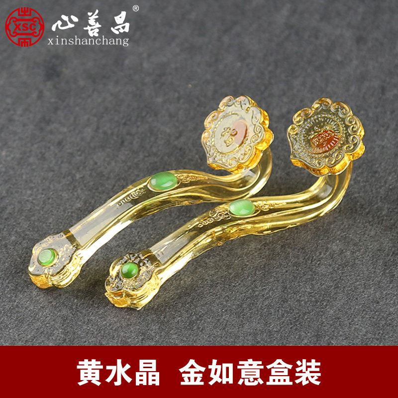 新品随葬品水晶h如意安葬用品殡葬祭祀陪葬金条如意黄色金色大号