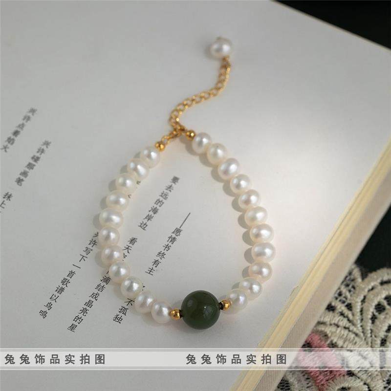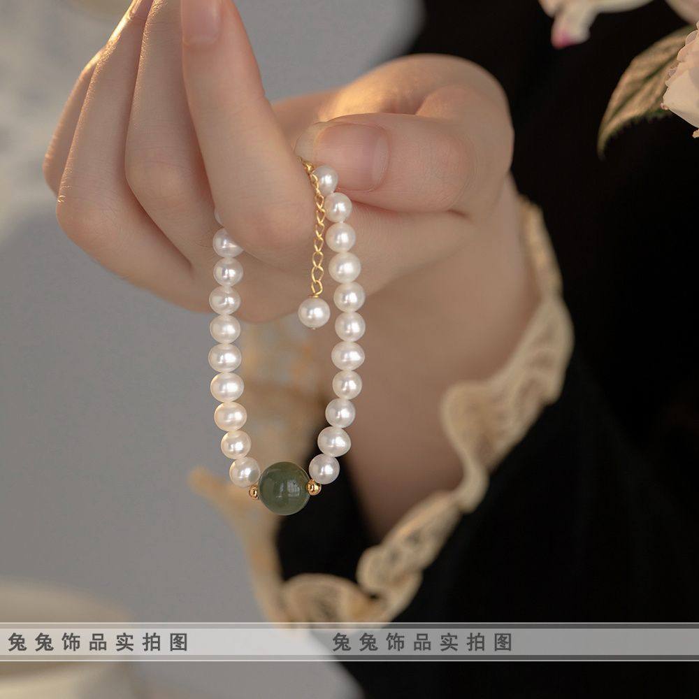 【钛钢不掉色】青黛绿色清透猫眼石强光感正圆贝转运珠闺蜜手链女