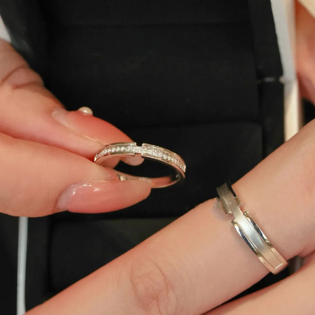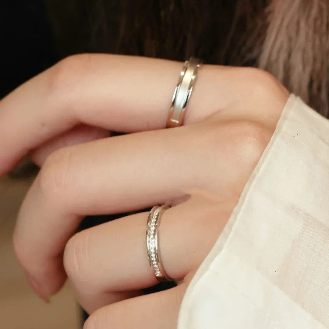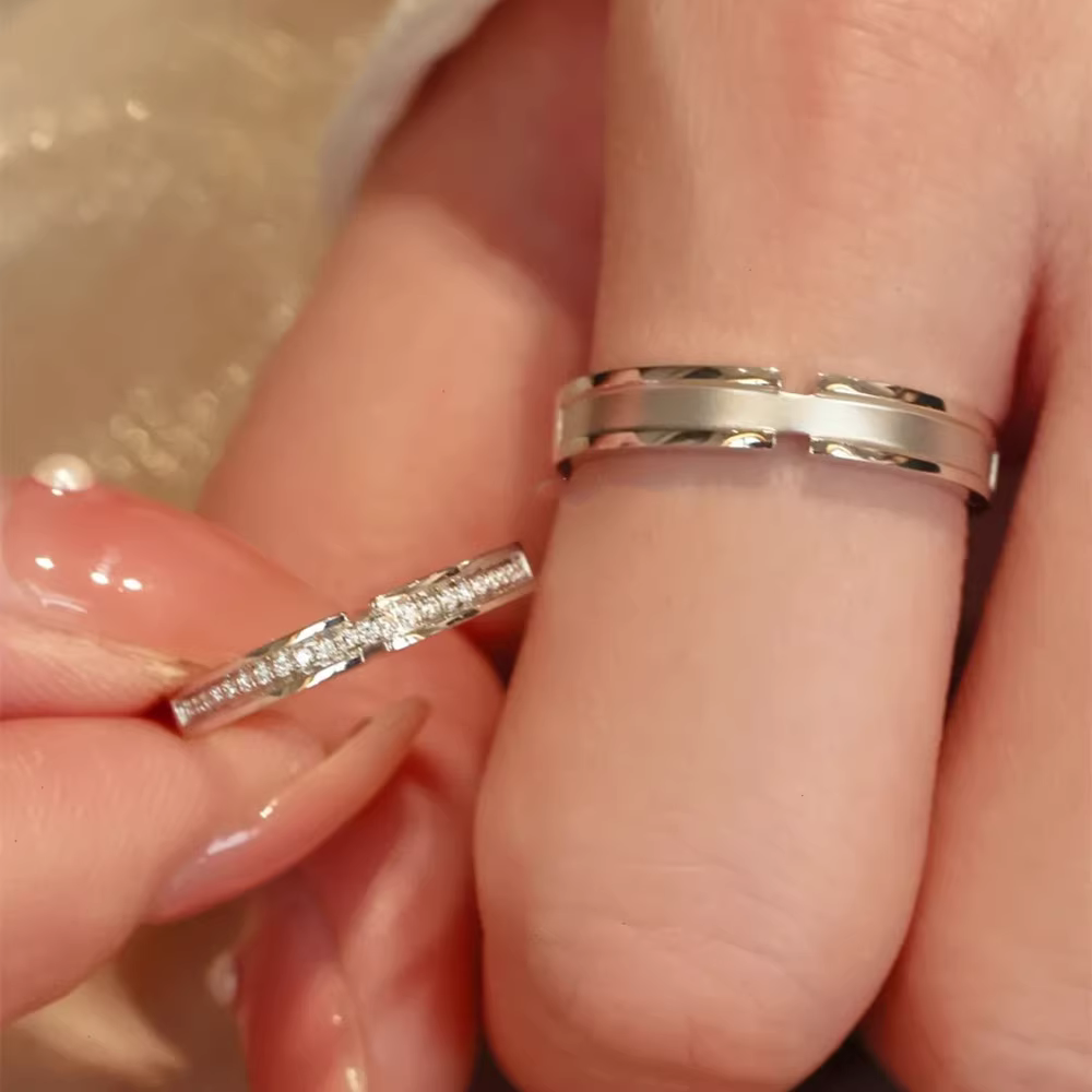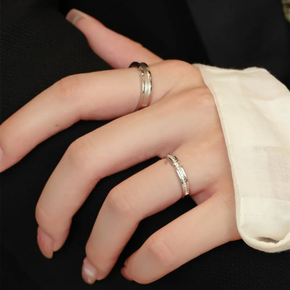 千亿满钻#蒹葭与白露少女小众设计高级开口情侣戒指男女磨砂指环