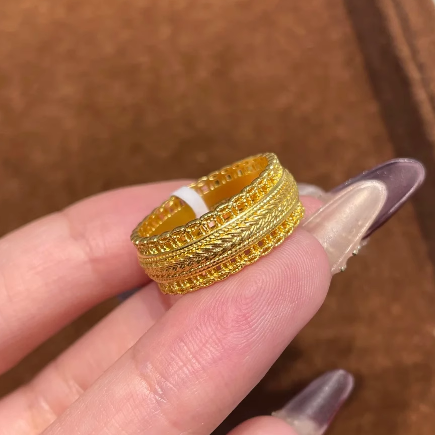 古法金包银戒指女腰缠万贯镂空钱币暴富花丝指环情人节礼物送女友