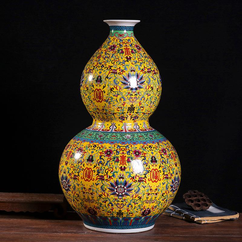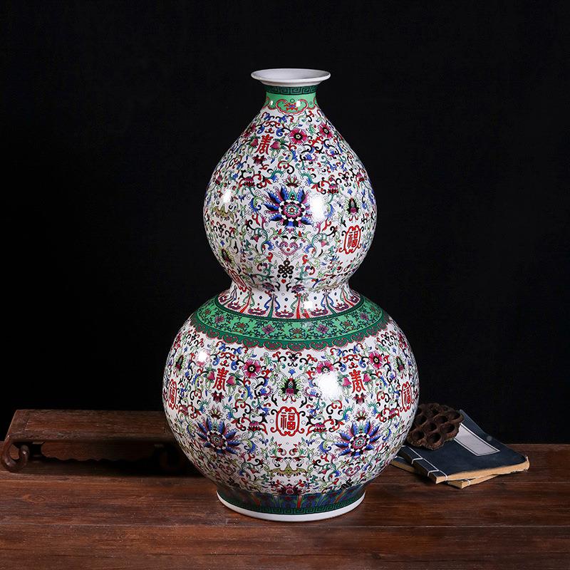 Atpeun万寿无疆大葫芦瓶 景德镇陶瓷器中式花瓶 家居客厅装饰工艺