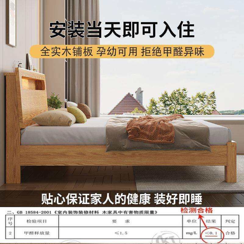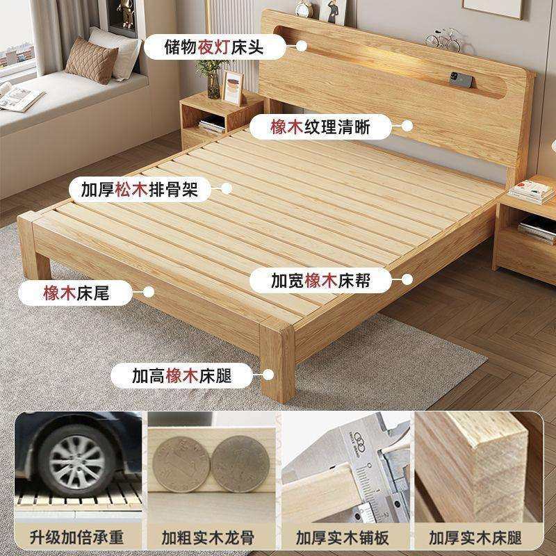 实木床1.8米卧室双人大床1.5米橡胶木小户型出租房用1.2m储物床架