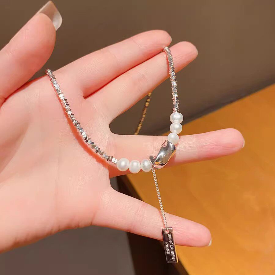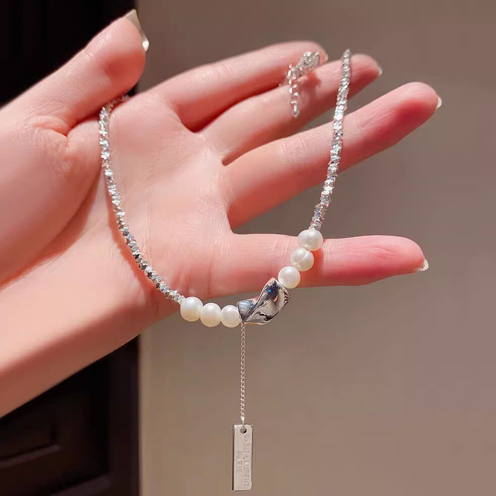 2026新款轻奢高级感碎银子不规则拼接珍珠项链女短款颈链小众配饰