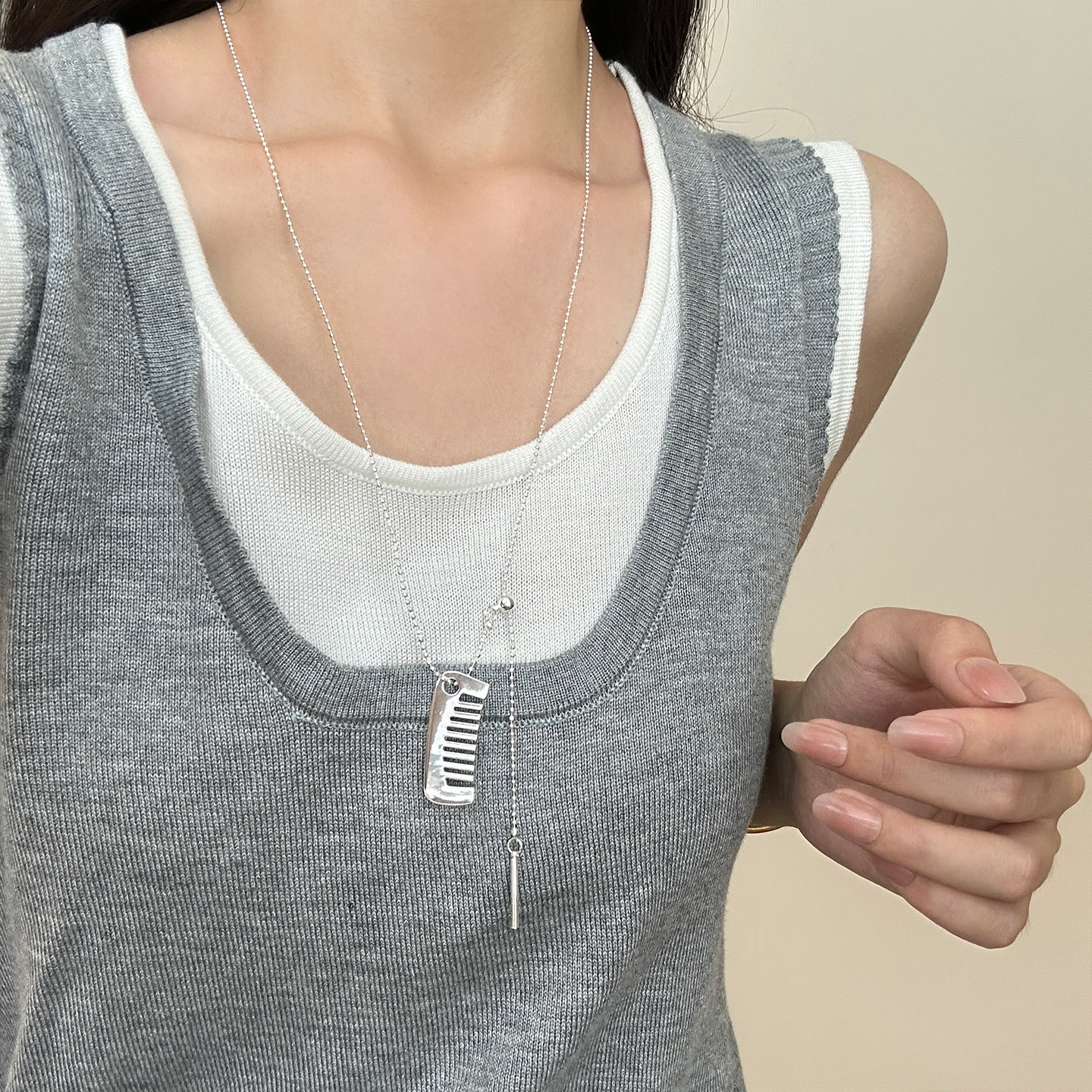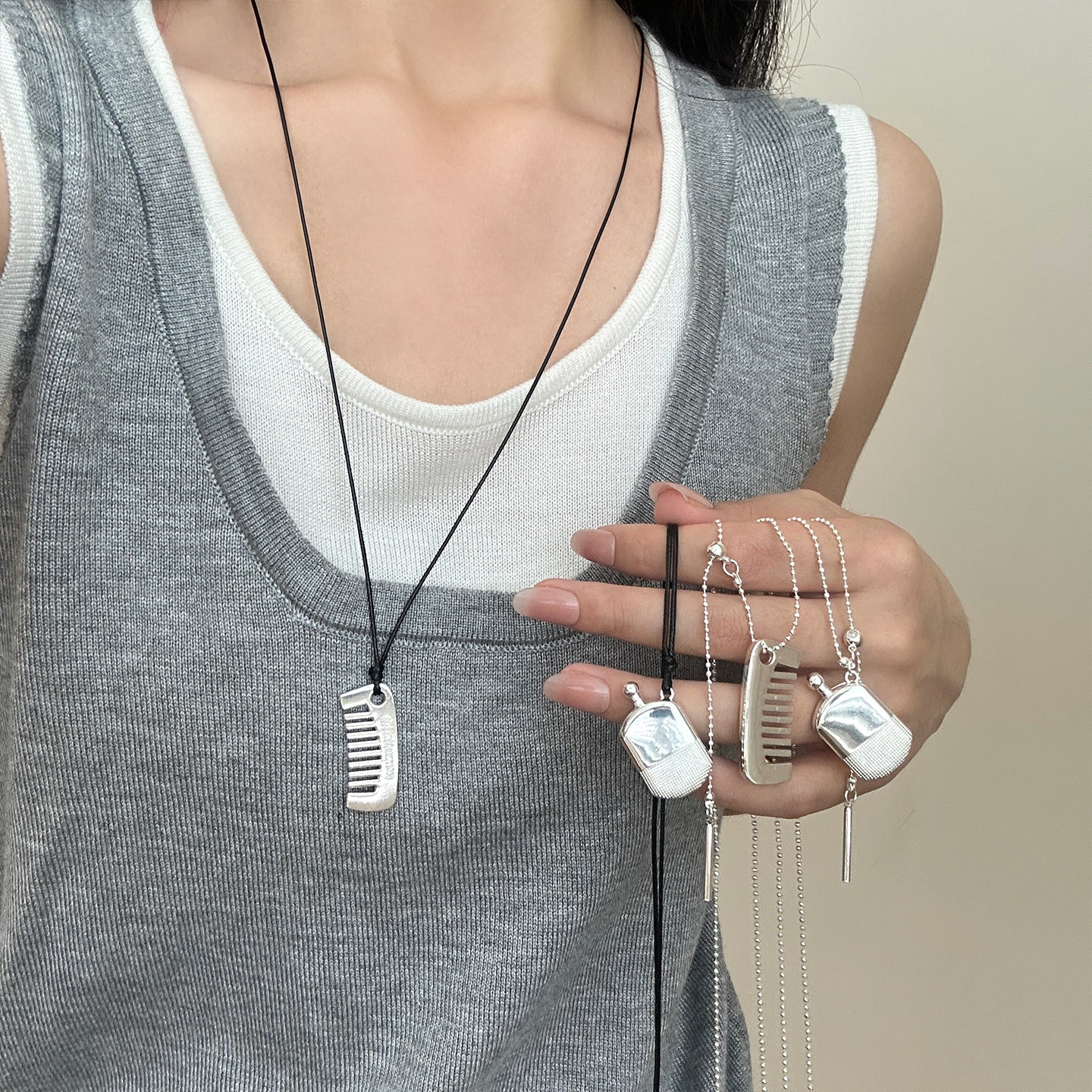 2025新款银色梳子吊坠抽拉项链小众设计感嘻哈长款毛衣链挂脖配饰
