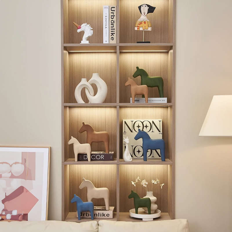 原木风文艺小木马小摆件客厅玄关电视柜家居软装饰品搭配木质书架
