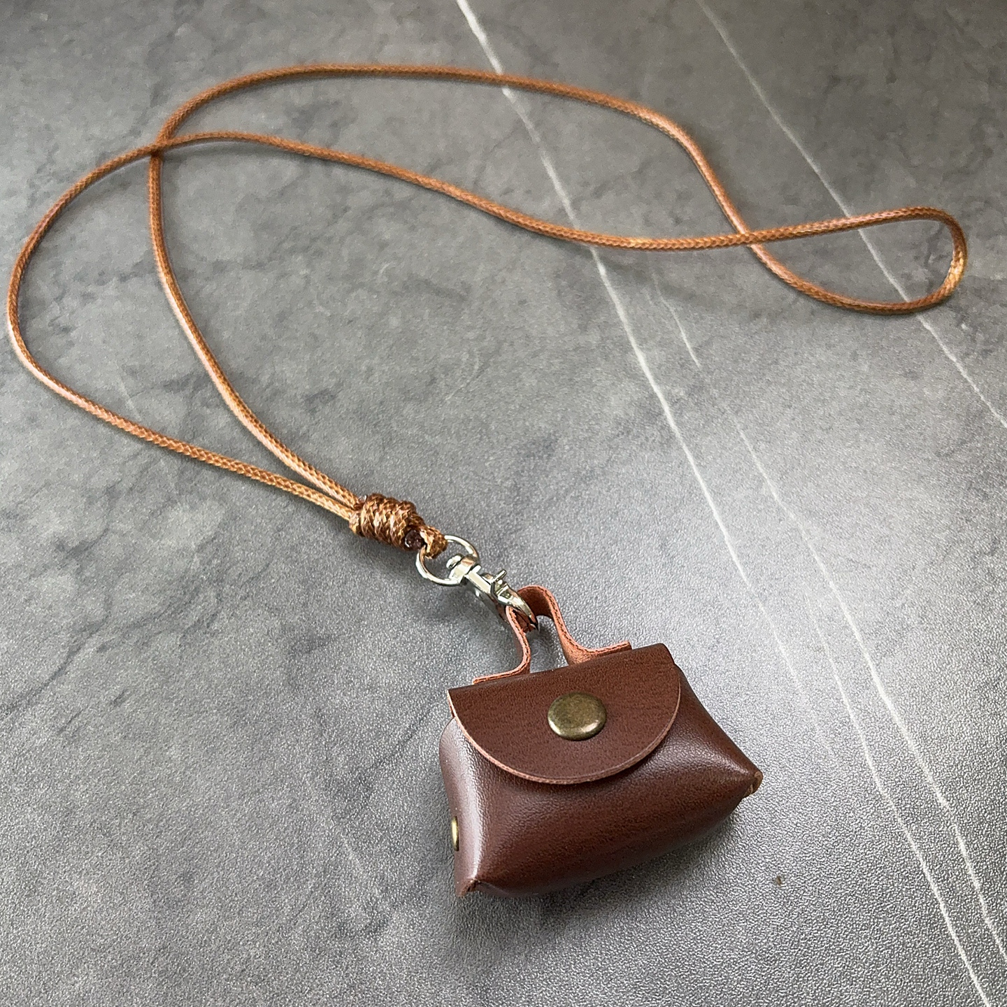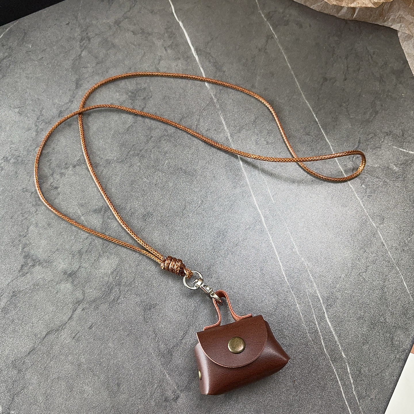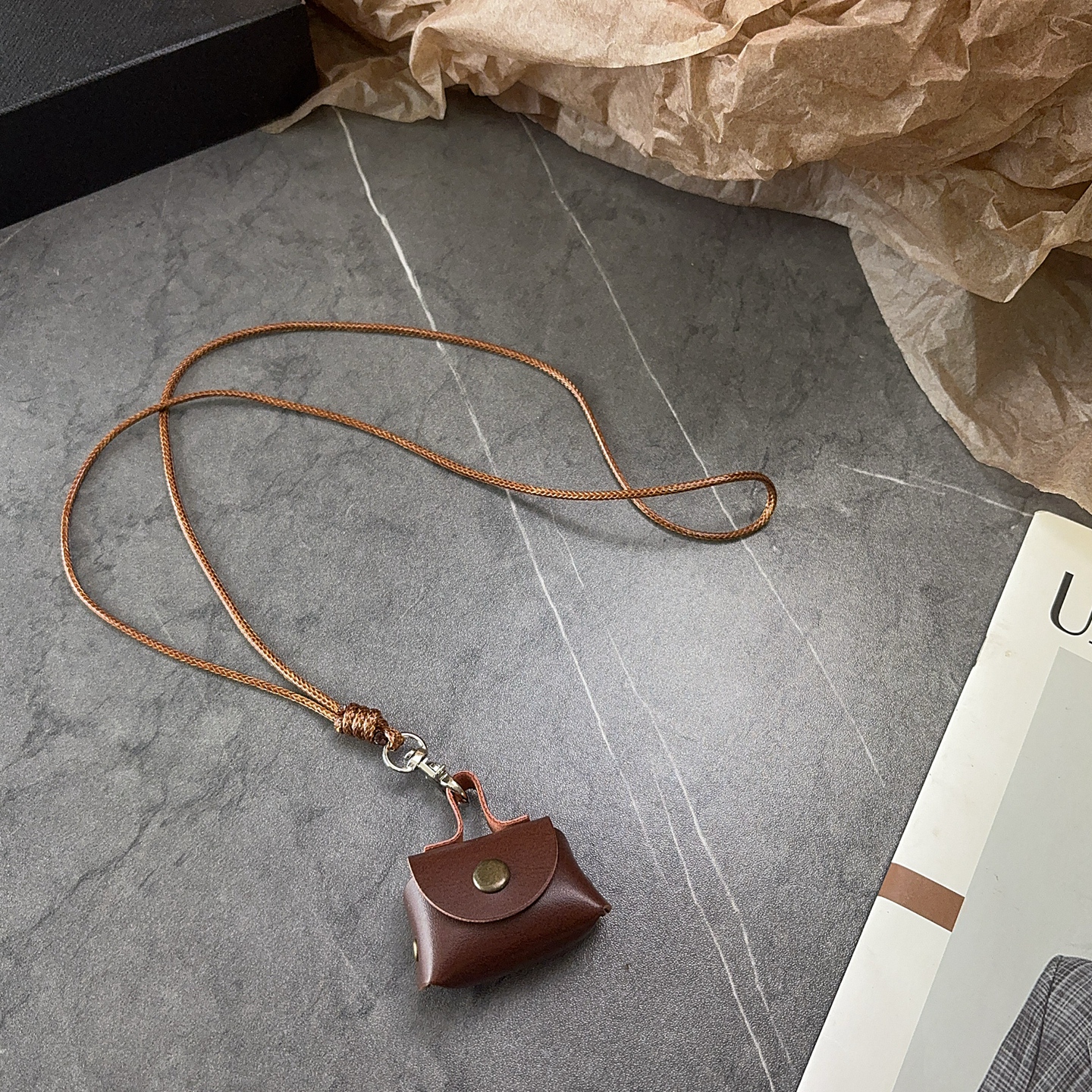 精致小巧皮质零钱包项链女耳机套挂件蜡绳毛衣链小众设计长款配饰